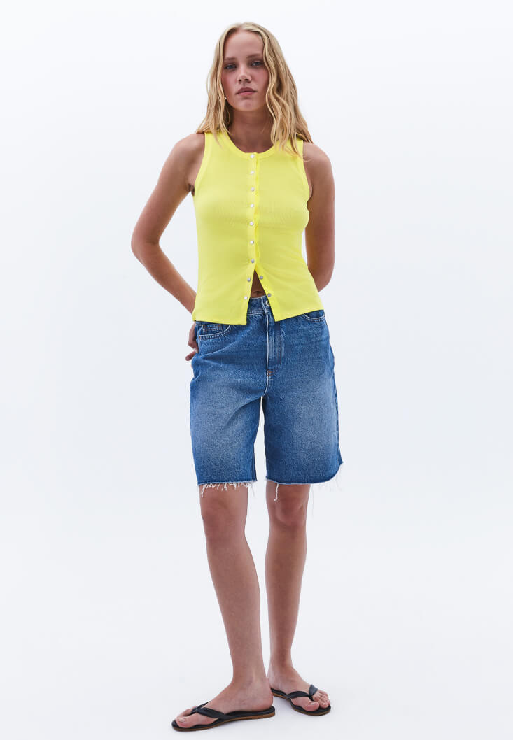 Minimal ve dinamik: çıtçıt detaylı atlet! Sade formuna eşlik eden çıtçıt detayıyla fark yaratan bu atlet, günlük kombinlerinize enerjik bir dokunuş katıyor. Vücudu saran yapısı sayesinde şık bir duruş sunarken, esnek kumaşı gün boyu konfor sağlar. Askılı tasarımı, sıcak havalarda tek başına kullanılabileceği gibi gömlek, hırka veya blazer ceketlerle katmanlı kombinlerde de mükemmel bir tamamlayıcı olur. Jean, etek ya da şortlarla kolayca eşleşerek stilinize pratik bir şıklık kazandırır.