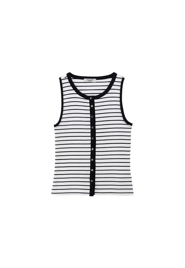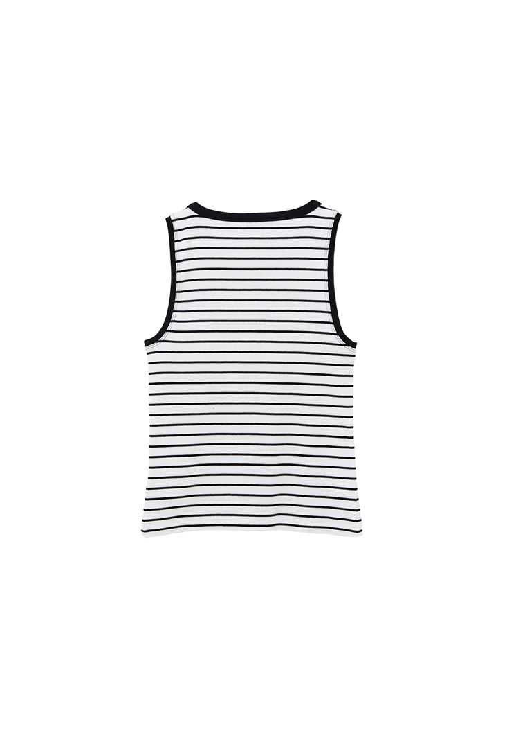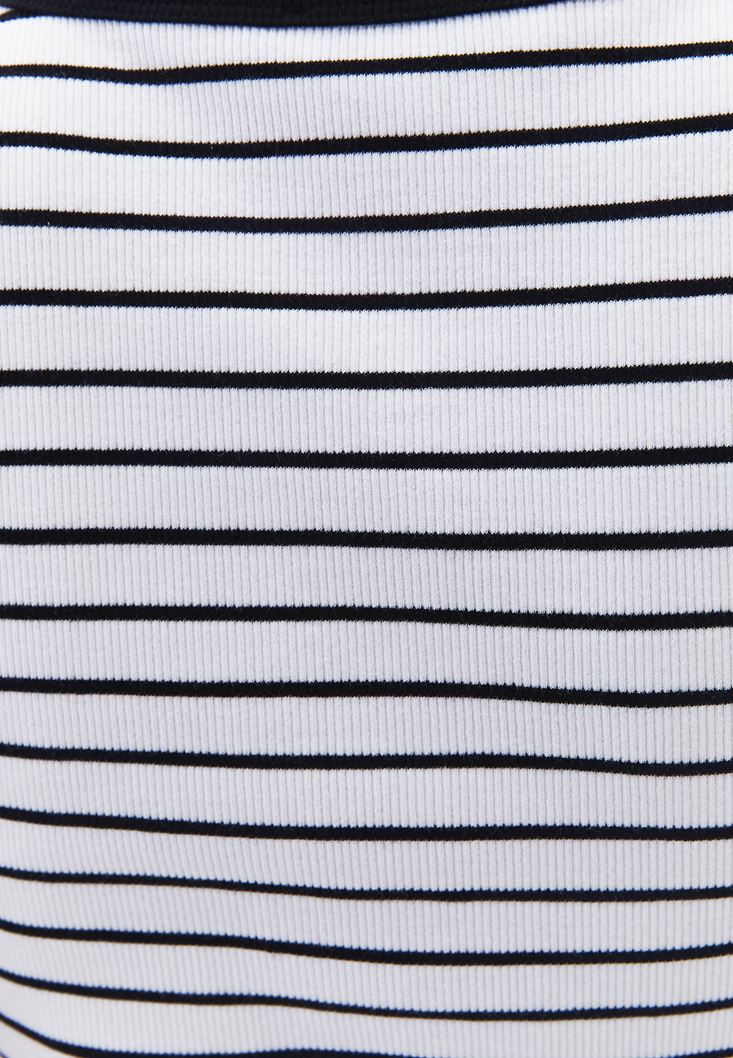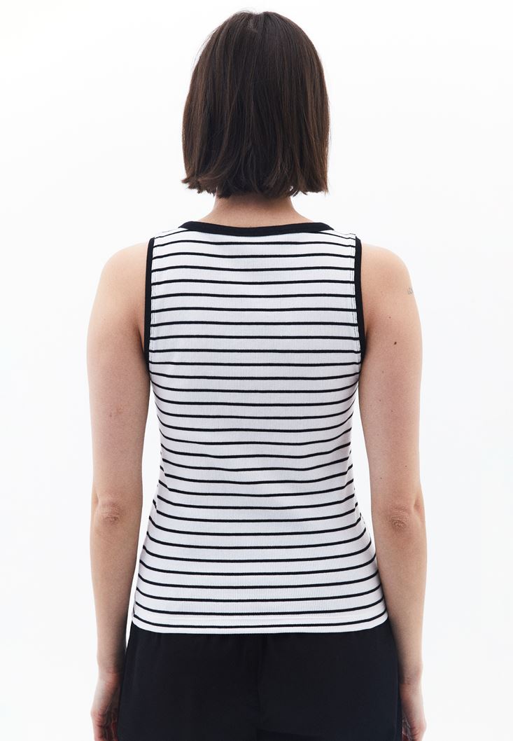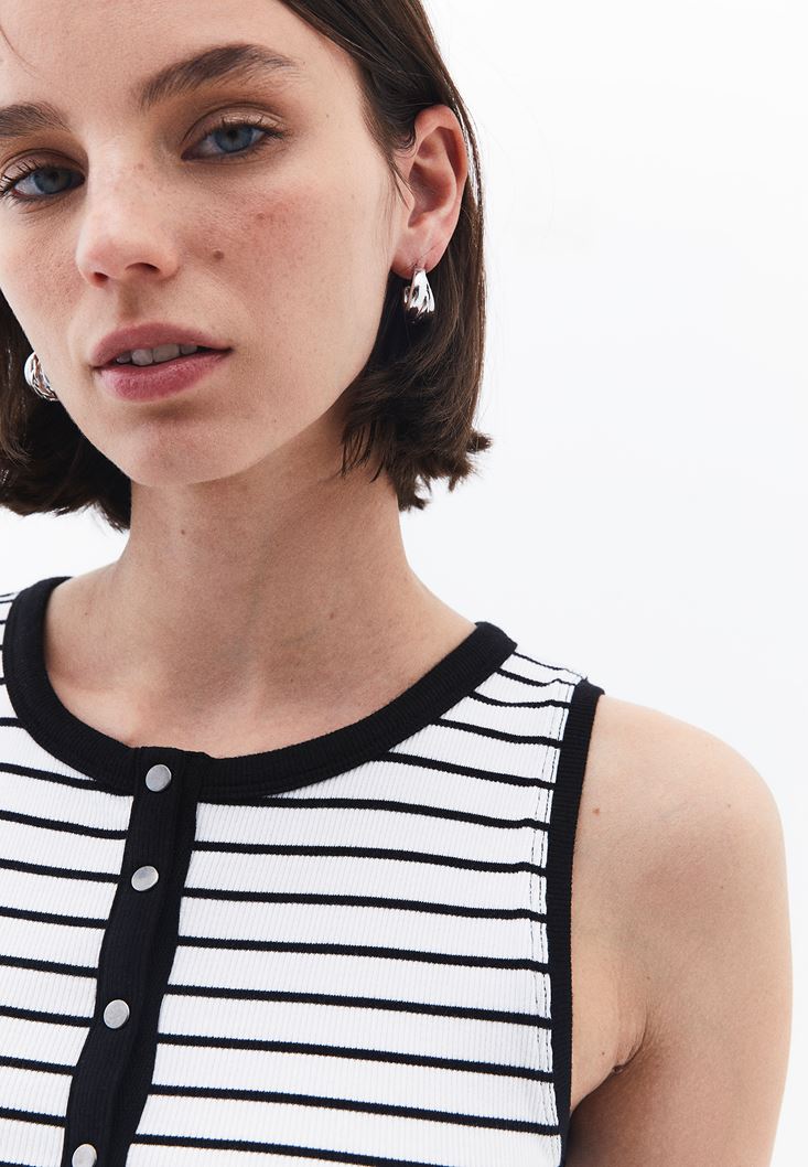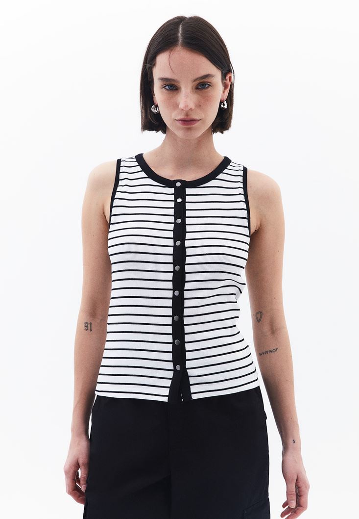Beyaz/Siyah Çıtçıt Detaylı Çizgili Atlet