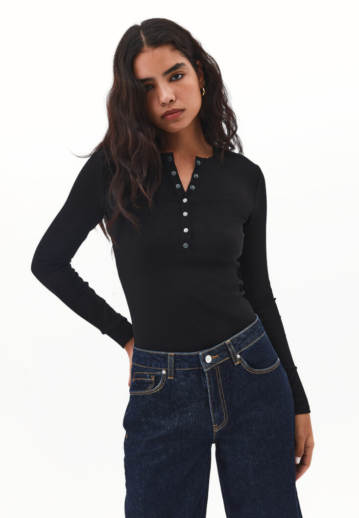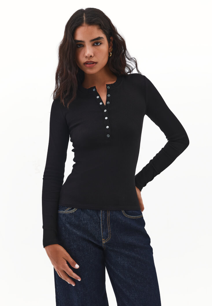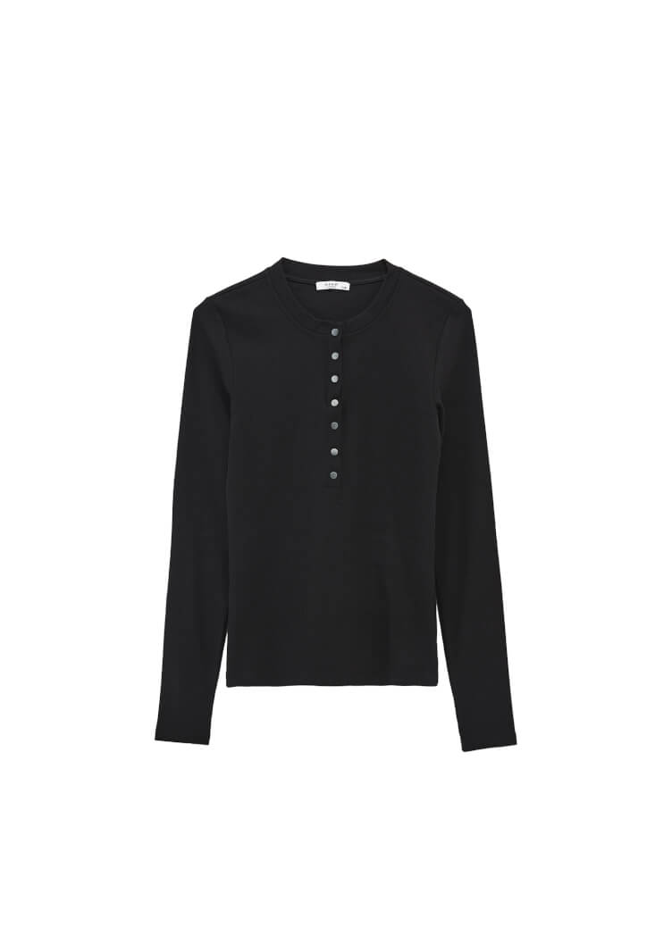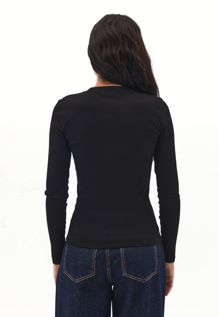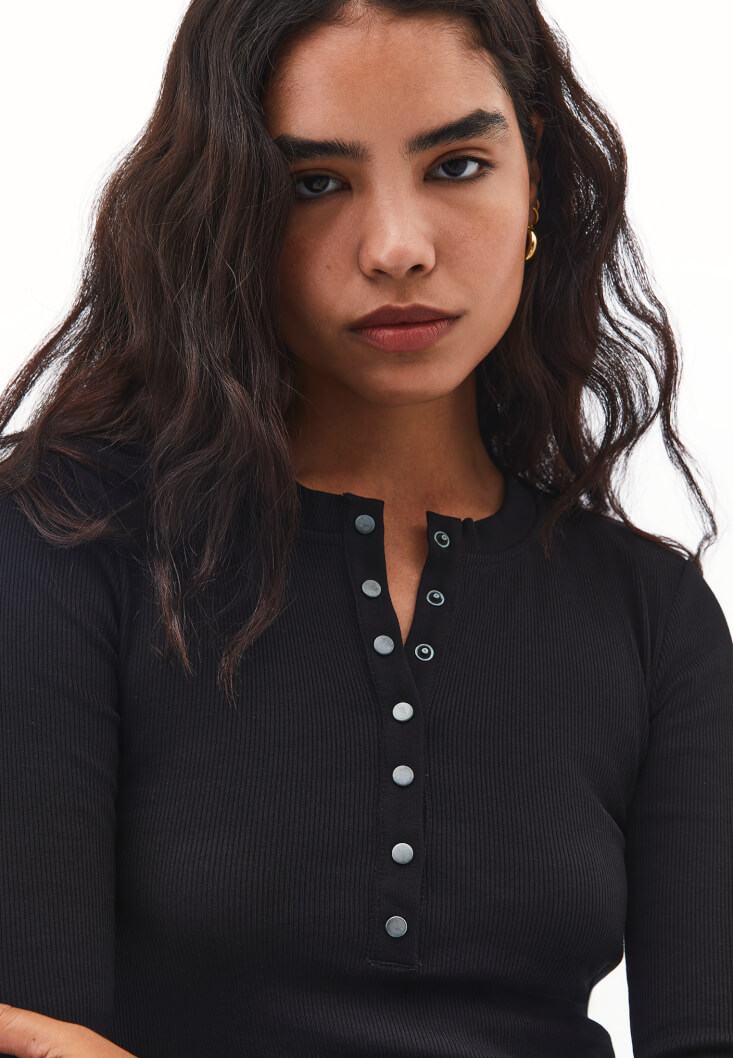 • Bayan Siyah Çıtçıt Detaylı Tişört
