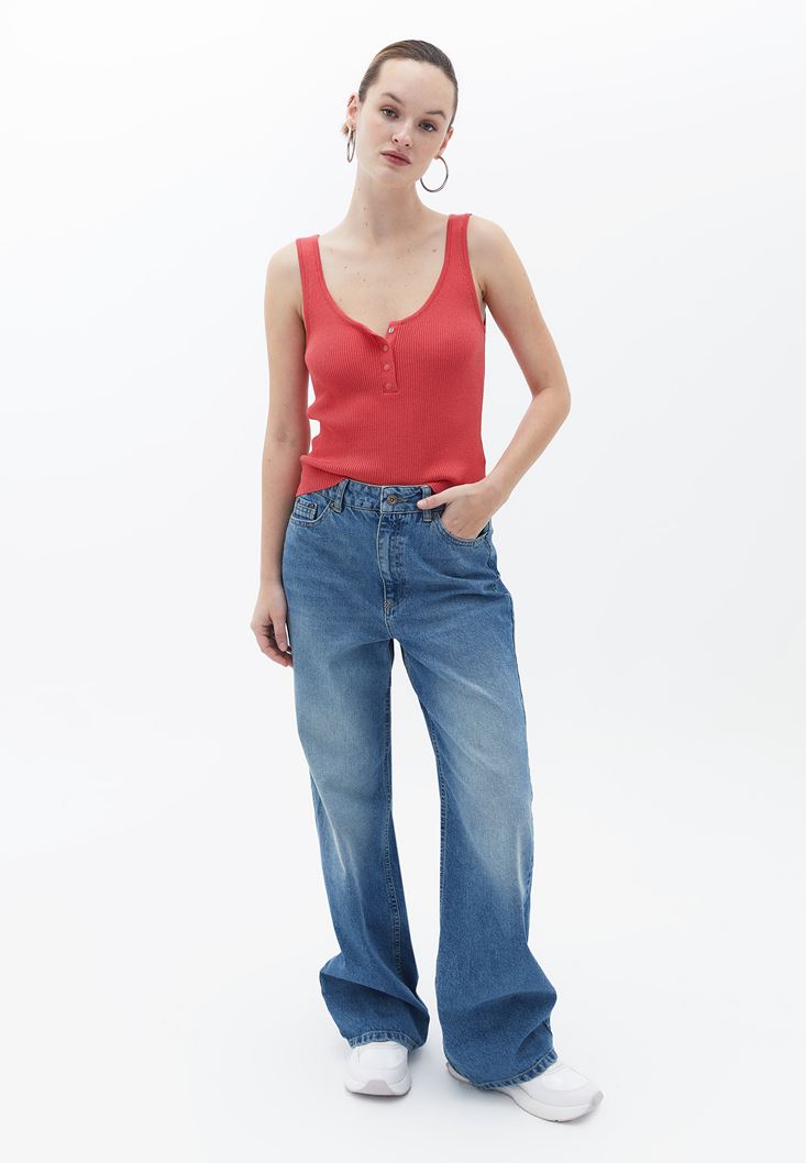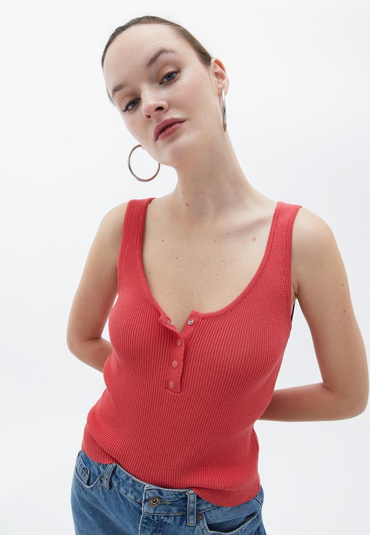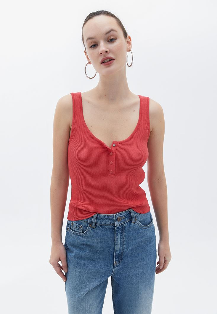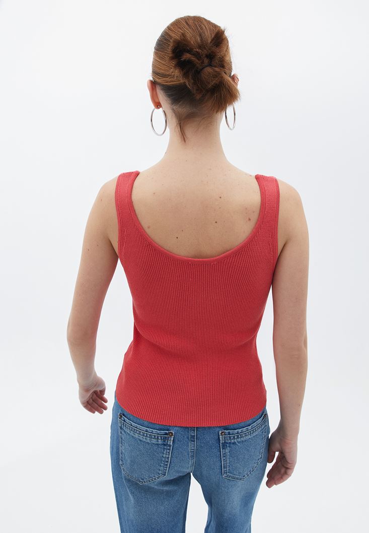 Kırmızı Çıtçıt Detaylı U Yaka Atlet