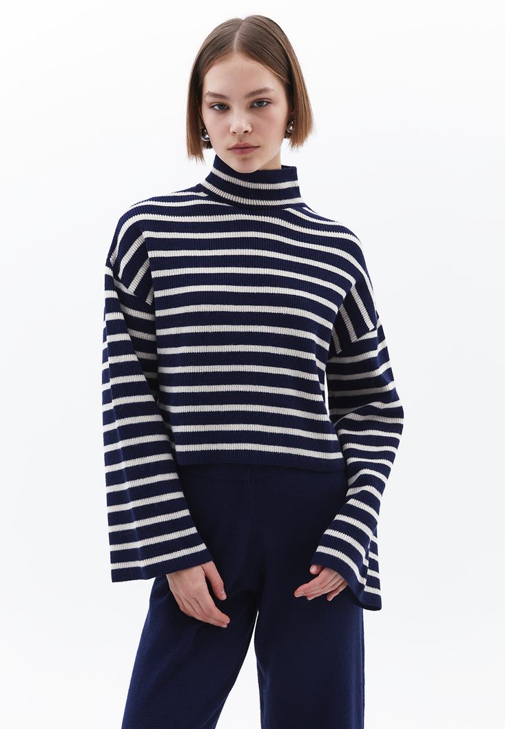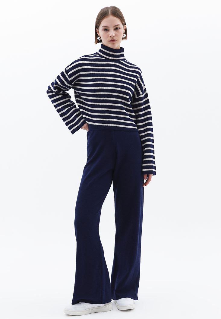 Balıkçı Yaka Crop Kazak ve Pantolon Kombini