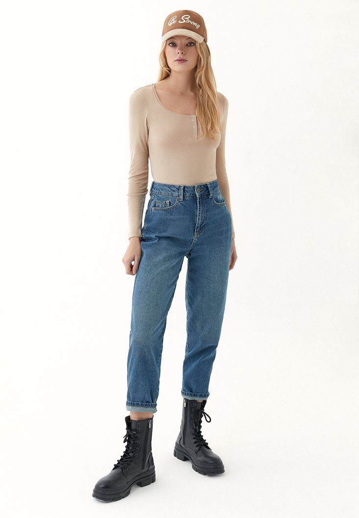 %100 pamuk içerikli, fitilli doku, kare yaka, yakası çıtçıtlı, bedeni saran esnek fit, uzun kollu, standart boy.