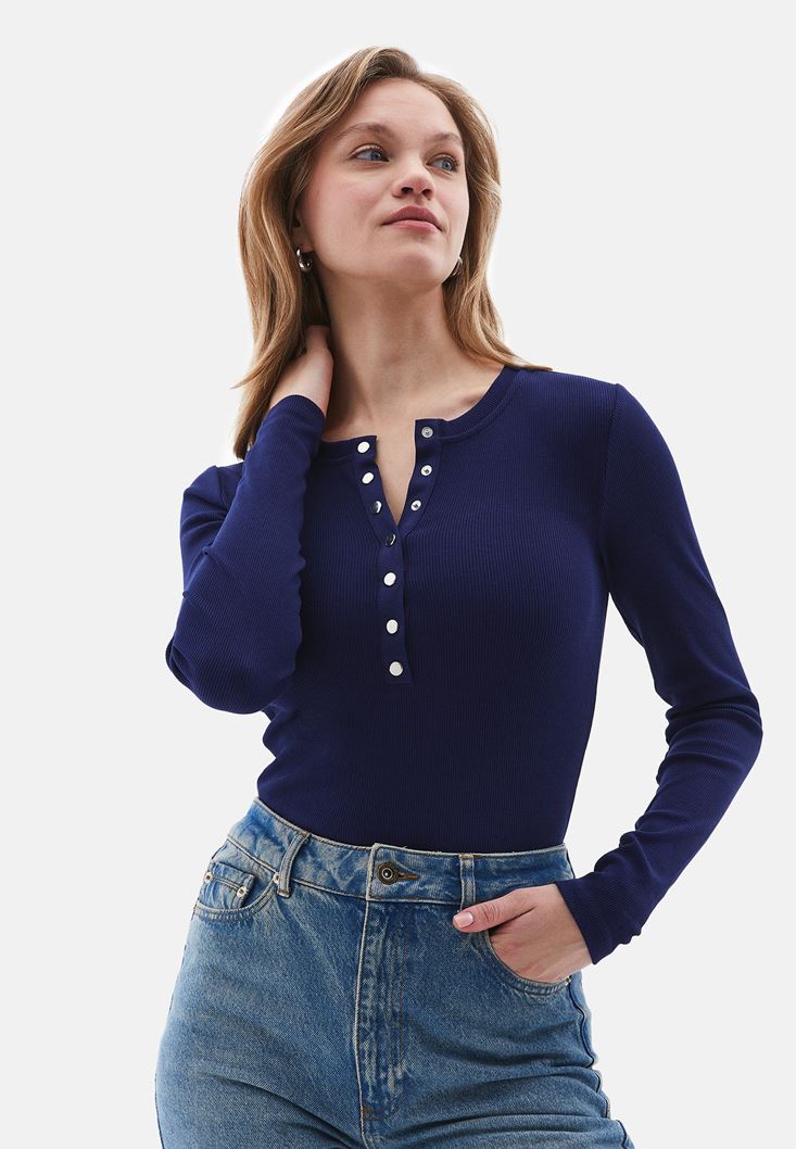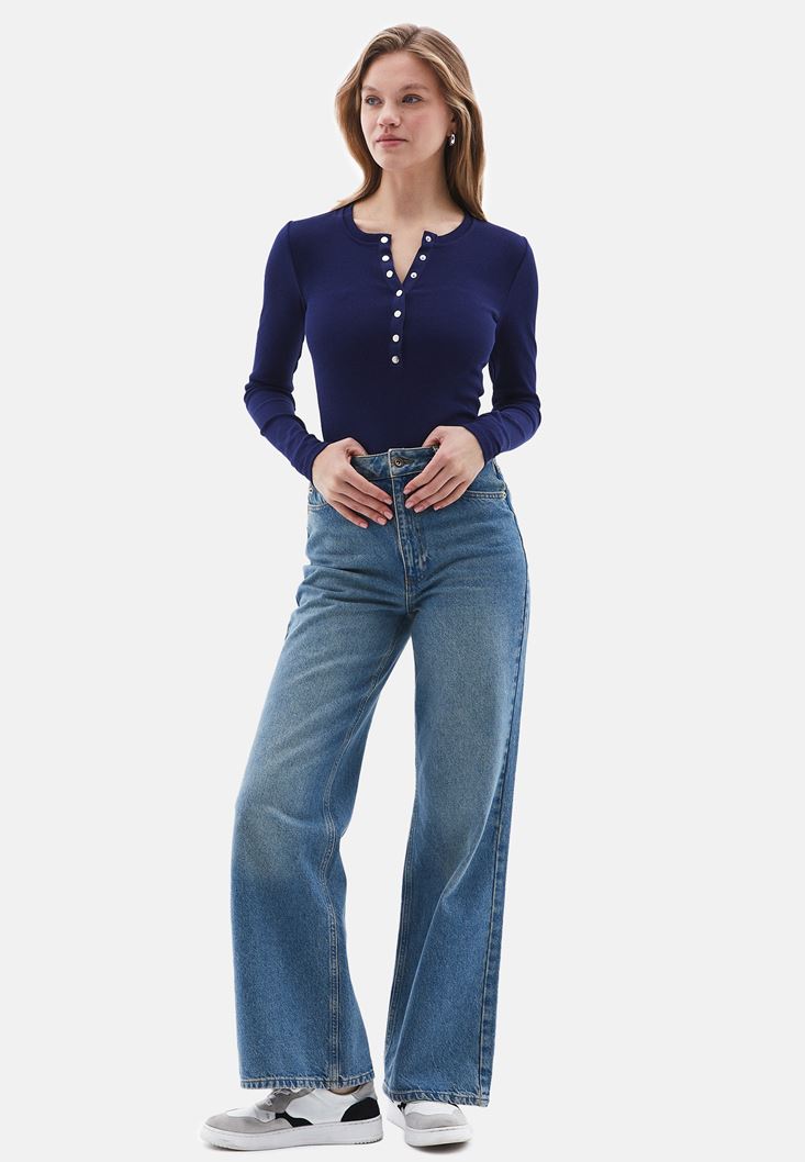 Çıtçıtlı Tişört ve Wide-Leg Pantolon Kombini