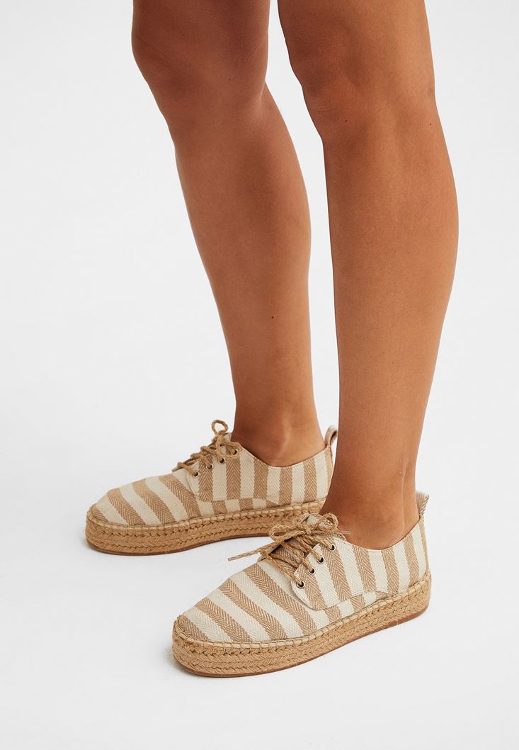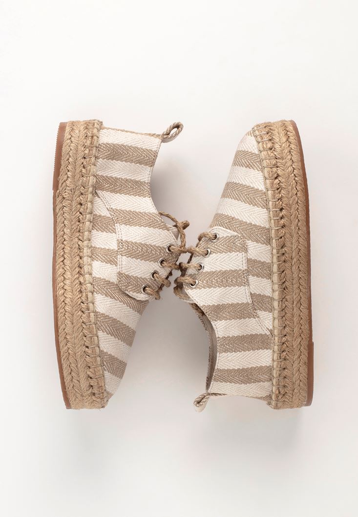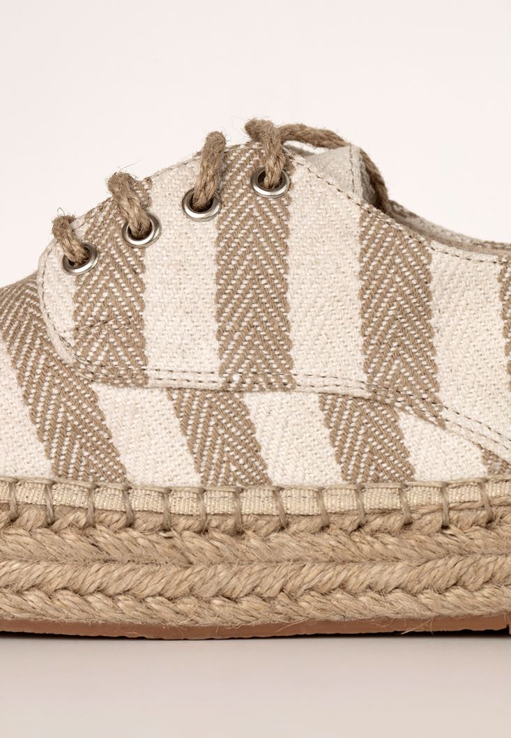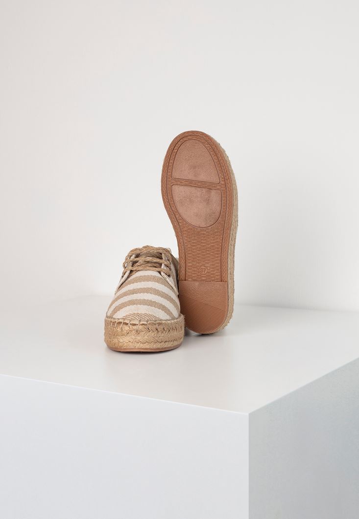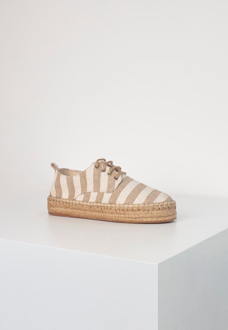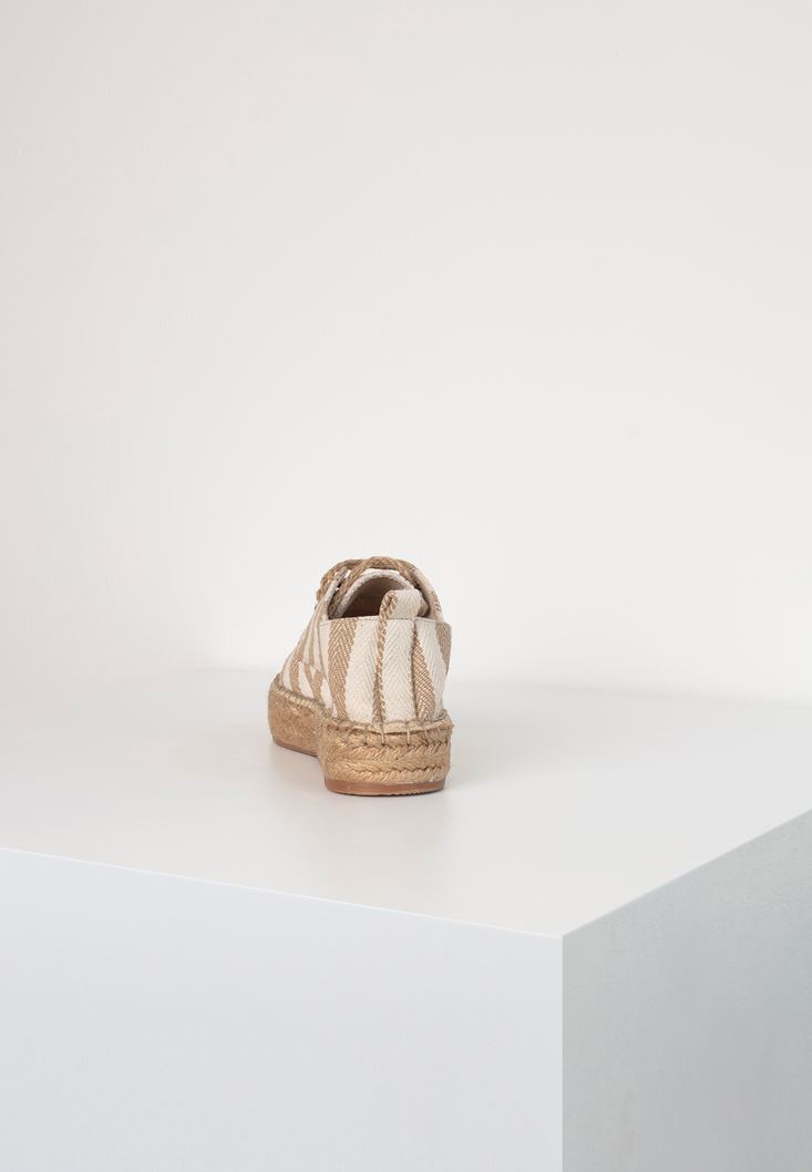 Krem Çizgi Desenli Espadril
