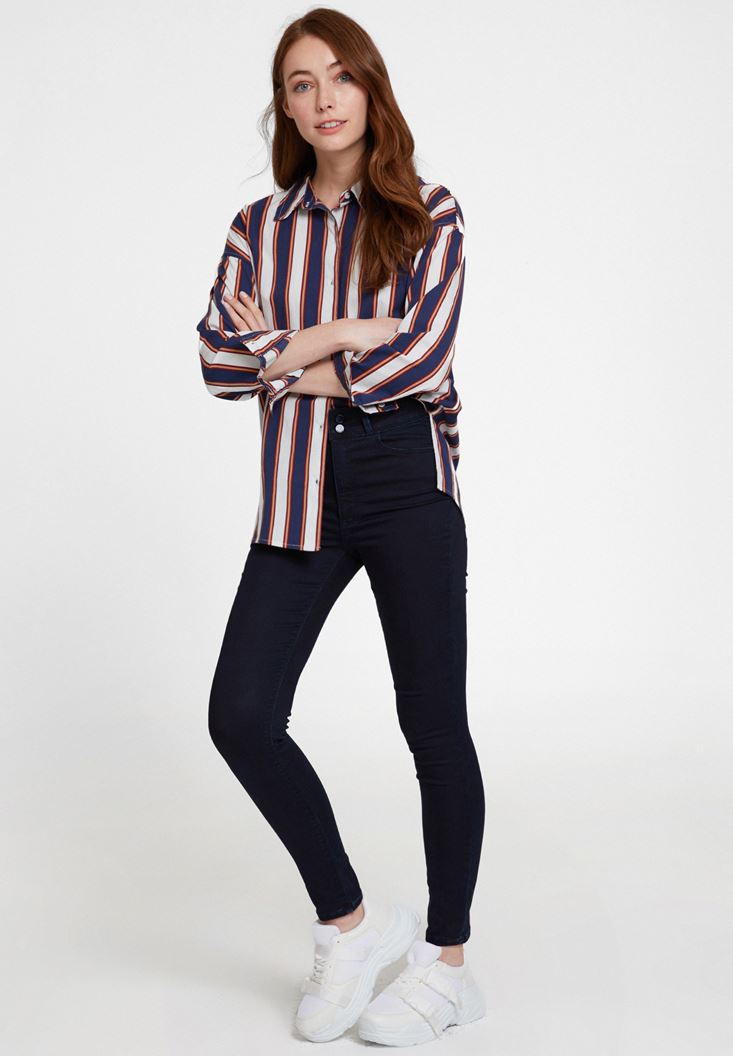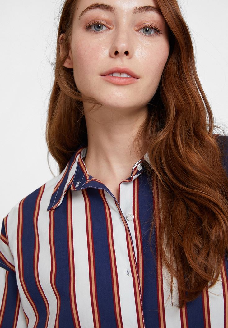 Çizgi Desenli Pamuk Gömlek modeli dökümlü kesimi, yumusak dokusu ve her zaman tarzinizi ön plana çikaracak güçlü ve iddiali durusu ile dikkat çeken bir tasarima sahip. Gömlek modelinin dikey çizgileri tasarimin vücudunuzu çok daha zarif ve uzun göstermesini sagliyor. Durusunuzu güçlendiren tasarimi ile kombinlerinize farkli bir hava kazandiracak gömlek modeli ile sikligi ve konforu bir arada elde etmenin tadini çikarabilirsiniz. Sahip oldugu pamuk dokusu ile her zaman rahat hissetmenizi ve hareket özgürlügüne sahip olmanizi saglayan gömlek modeli ile kombinlerinizi keyifle tamamlayacaksiniz. OXXO’nun enerjisini ve özgür ruhlu kadinlardan aldigi ilhami öne çikaran gömlek modeli ile elde edeceginiz sikligi her zaman çok seveceksiniz.