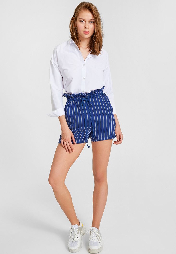 • Bayan Çok Renkli Çizgi Desenli Şort
