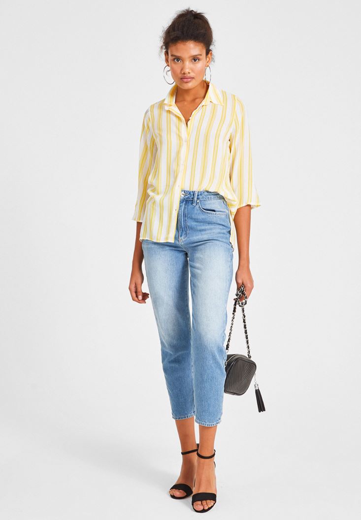 Çok Renkli Çizgi Desenli Uzun Kollu Gömlek