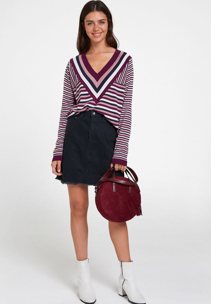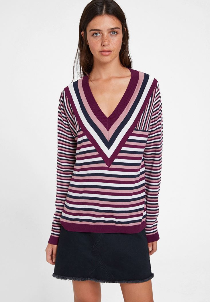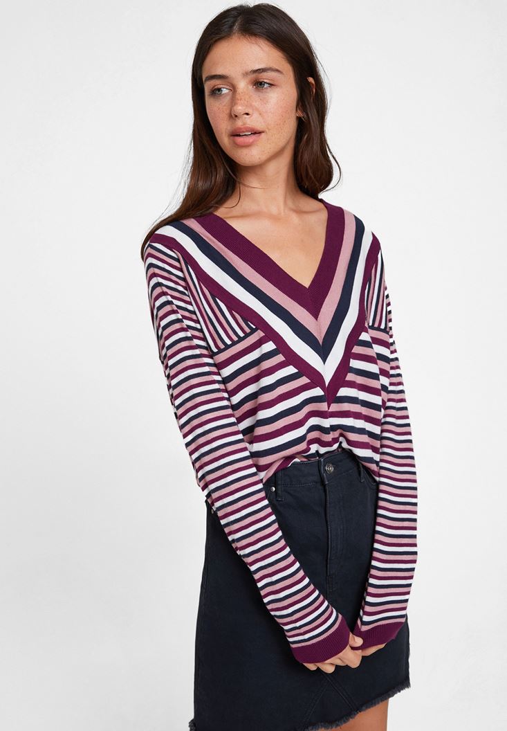 Oxxo Çizgi Desenli V Yaka Triko 2083503300