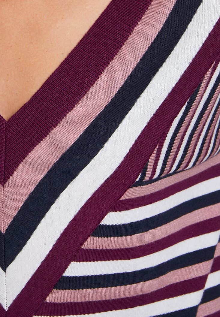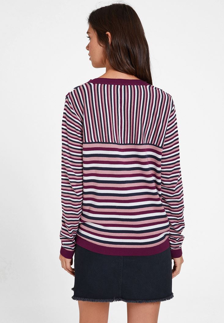 Çok Renkli Çizgi Desenli V Yaka Triko