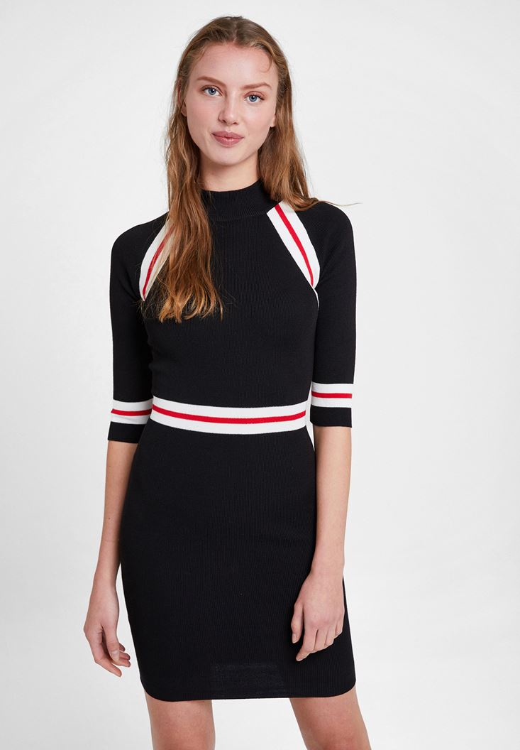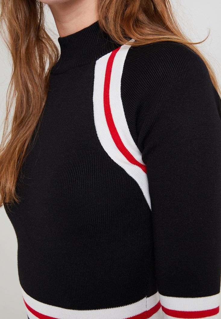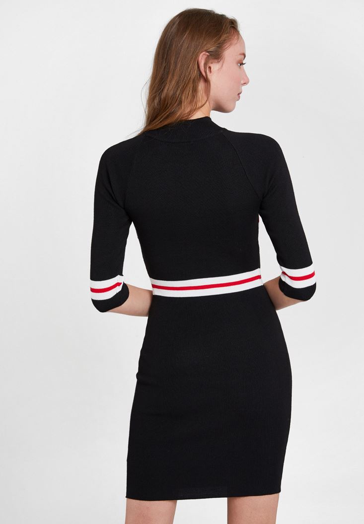 Çizgi Detaylı elbise dokusu, duruşu ve modern çizgileri ile kombinlerinizde hoş bir hava elde etmenize yardımcı olacak elbise modelleri arasında yer alıyor. Yarım boğazlı yaka kesimi, yakadan koltuk altına kadar uzanan şerit detayları ile hareketli bir görünüm kazanan elbise modeli, bele oturan kesimi ile vücudu başarılı bir şekilde sarıyor. Tasarımın bel kesiminde kullanılan şerit detay bel bölgesini zarif bir şekilde ön plana çıkarıyor. Yarım kol boyu ve yine bilek üzerinde kullanılan şerit detayları ile tasarım bütünlüğünün dikkat çektiği elbise modeli sahip olduğu dokusu ile de fark yaratıyor. Viskon lifinin nefes alan yumuşak dokusu sayesinde hareket özgürlüğü ve kullanım konforu sunan elbise modeli, OXXO’nun konforlu şıklık anlayışını yansıtıyor.