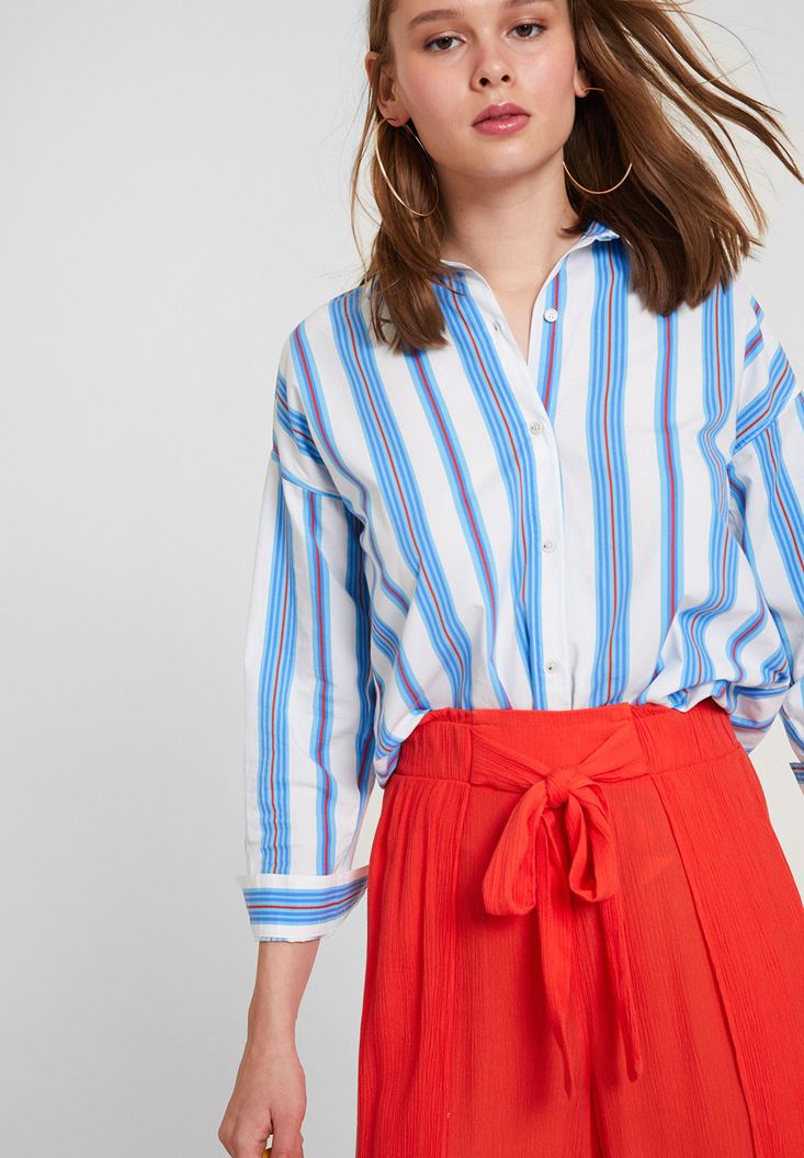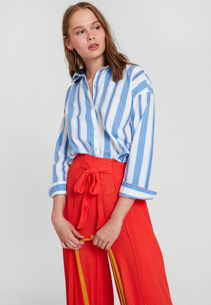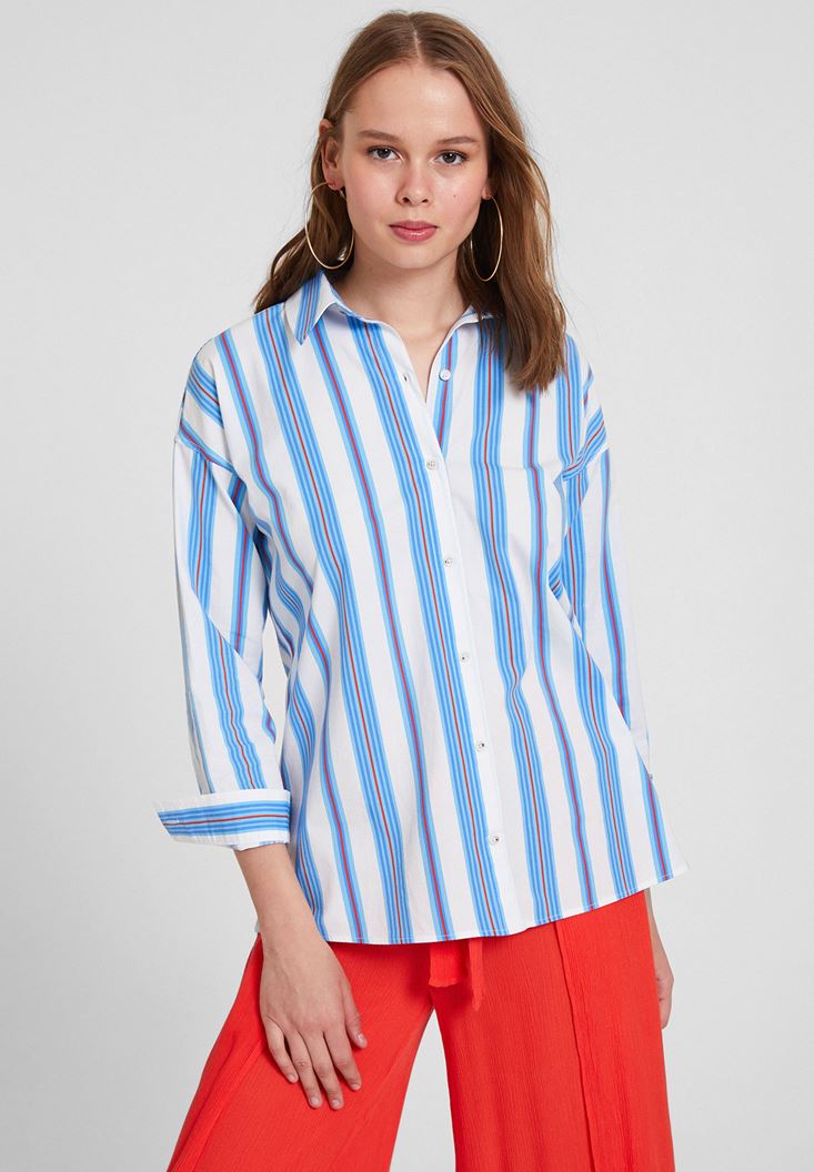 • Bayan Çok Renkli Çizgi Detaylı Gömlek