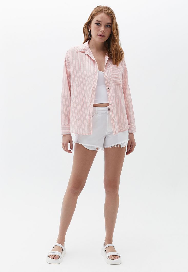 Oversize Çizgili Gömlek ve Denim Şort Kombini