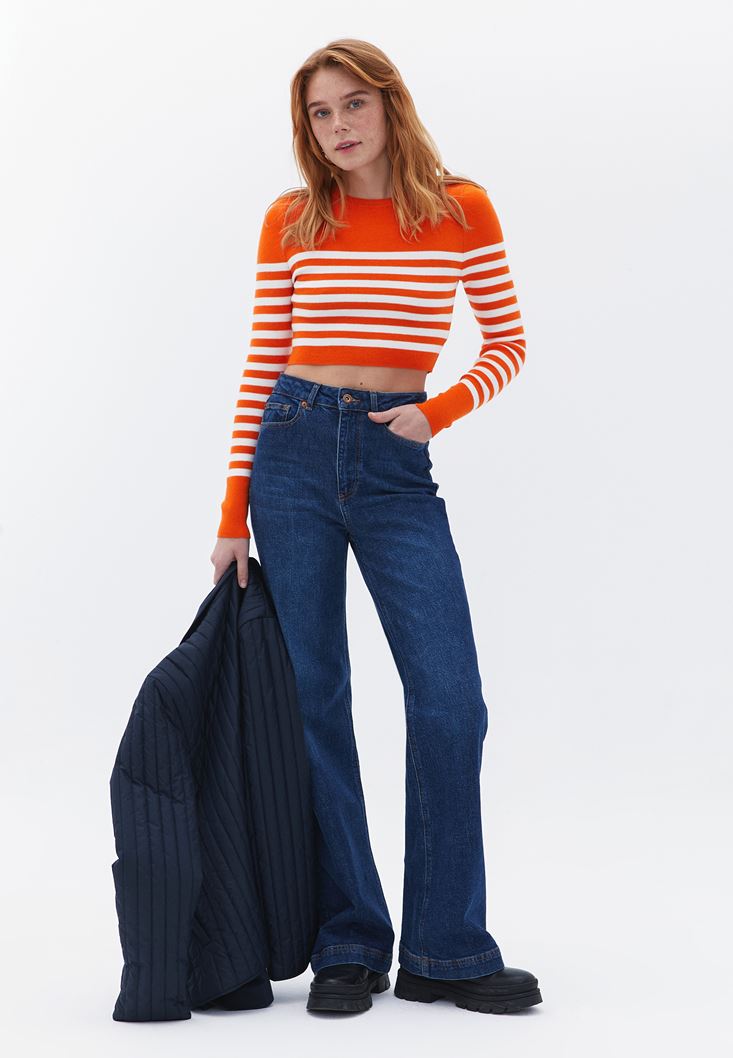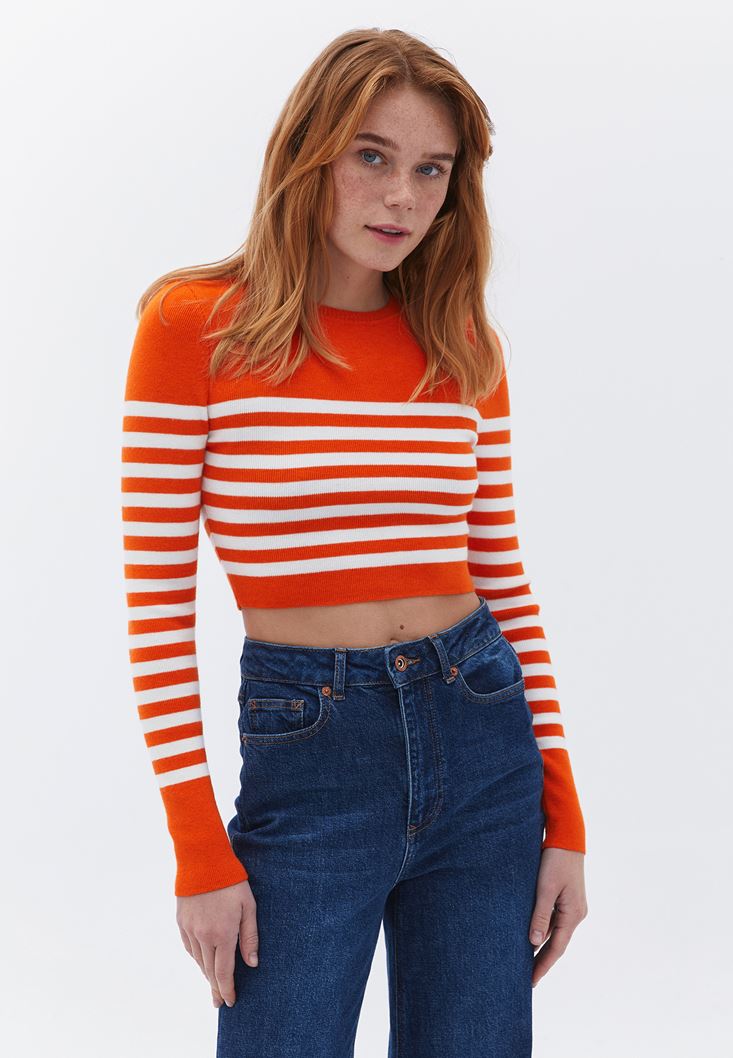 Oxxo Çizgili Crop Triko 2173654952