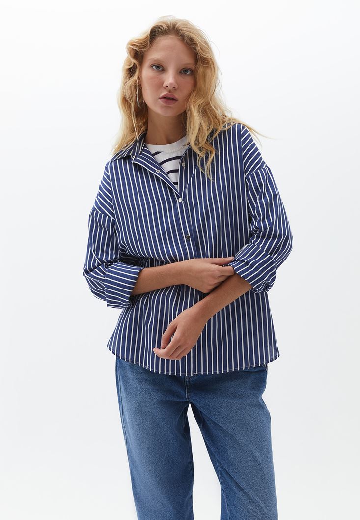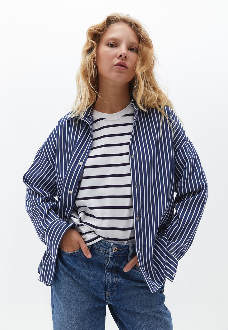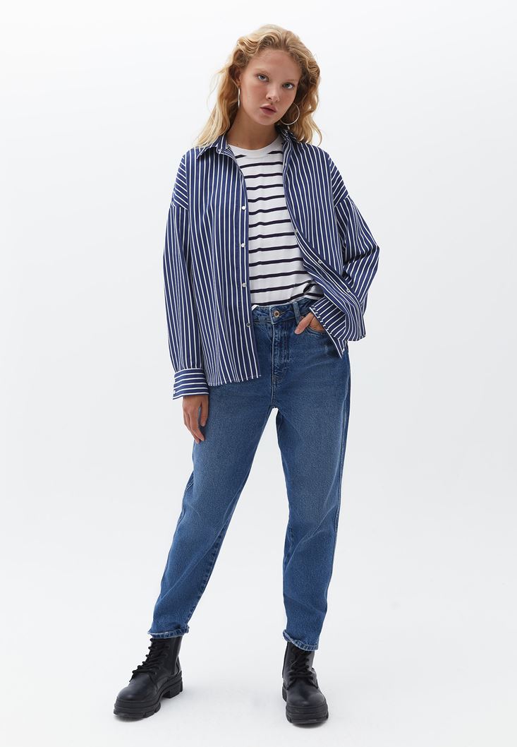 Çizgili Gömlek ve Pamuklu Mom Pantolon Kombini