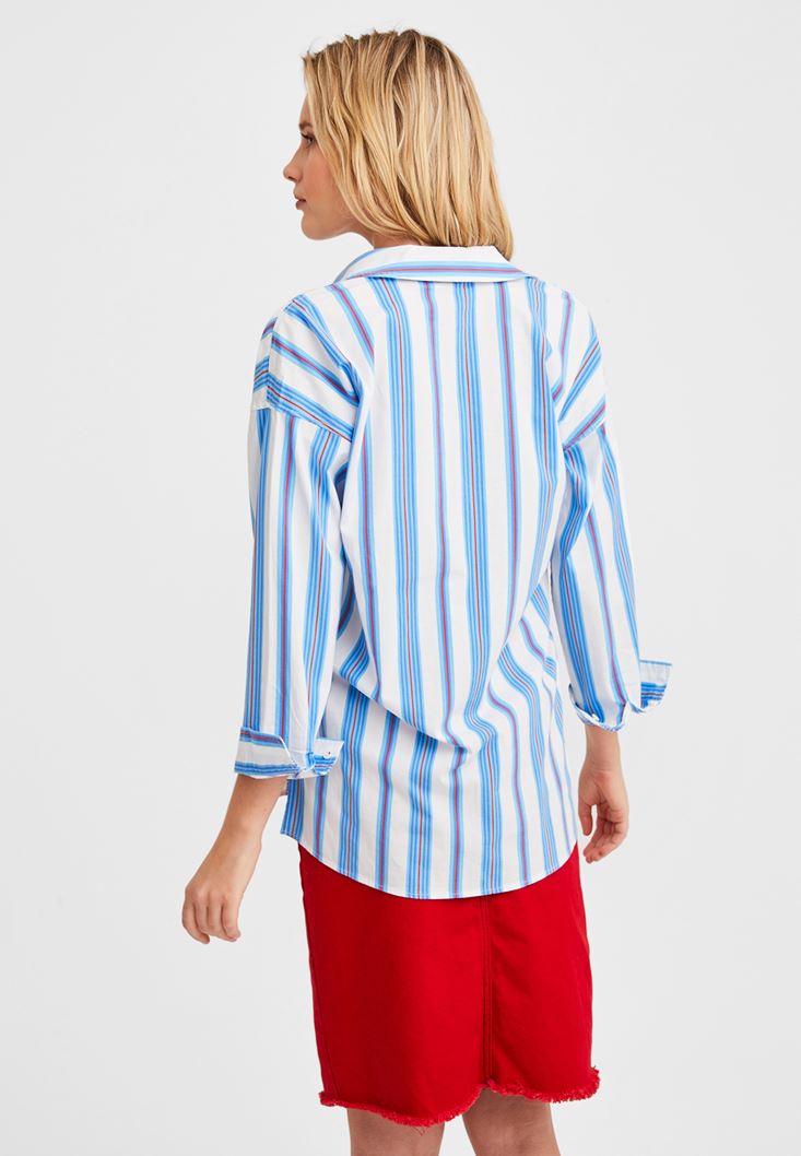 • Bayan Çok Renkli Çizgili Pamuk Gömlek