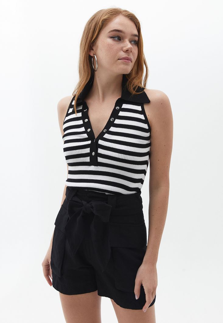 Fit: Bodycon / Yaka: Polo Collar / Kol: Sleeveless