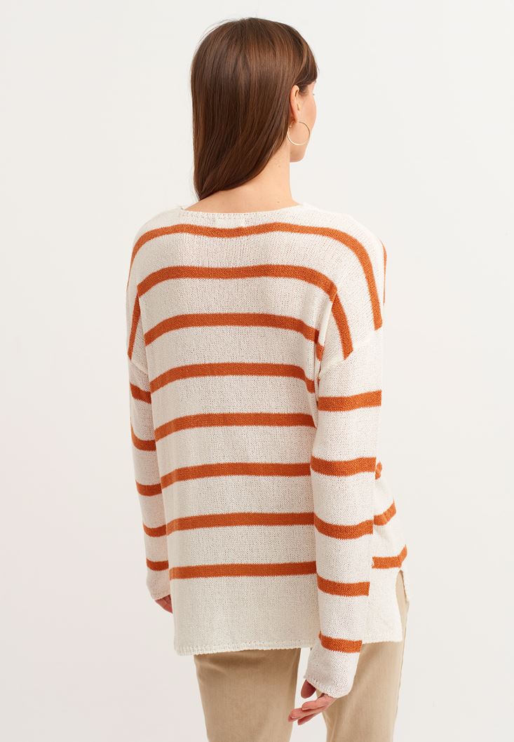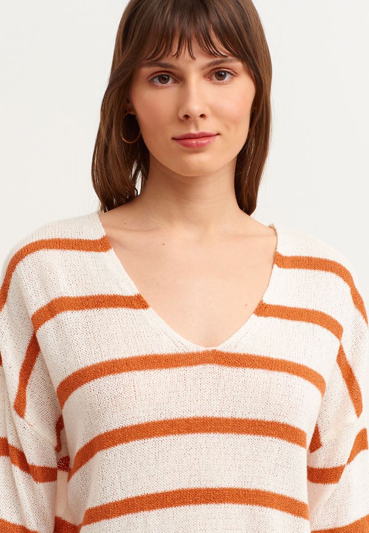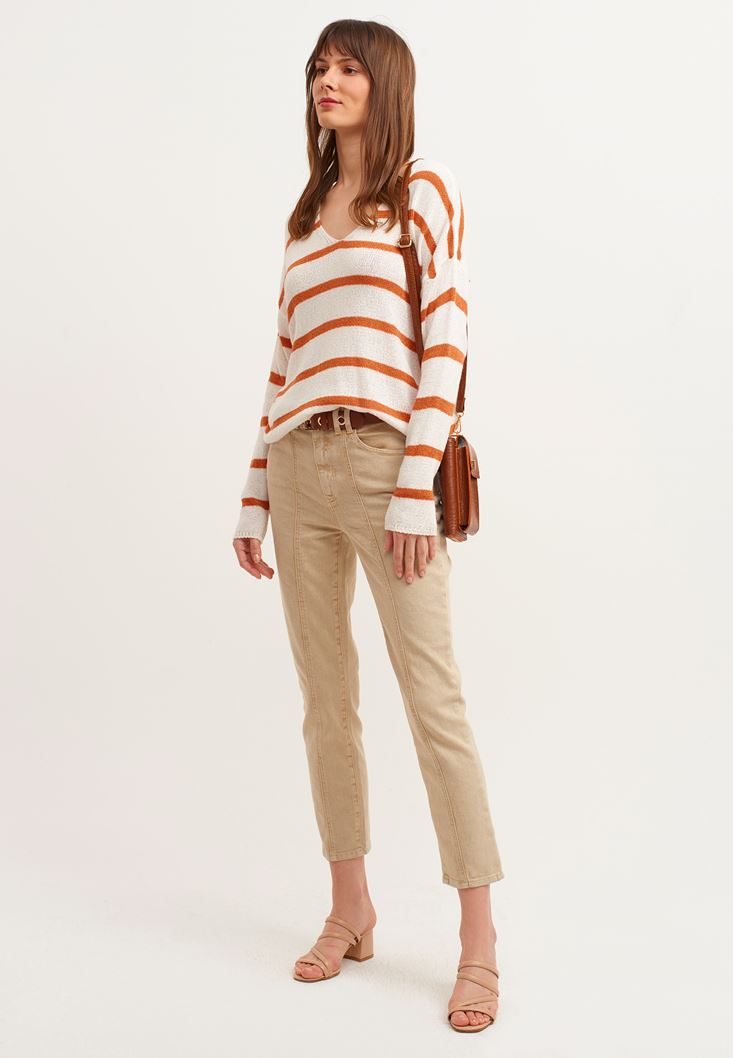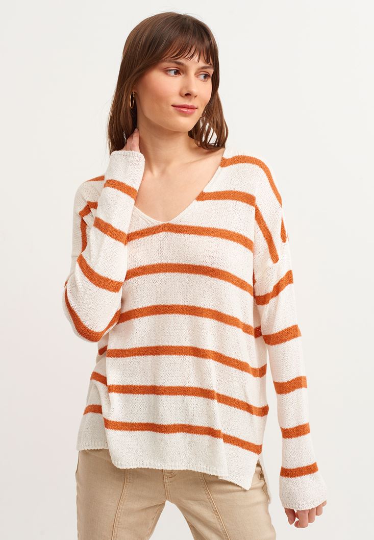 • Bayan Çok Renkli Çizgili V-Neck Triko