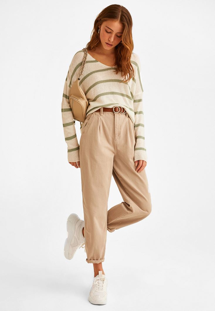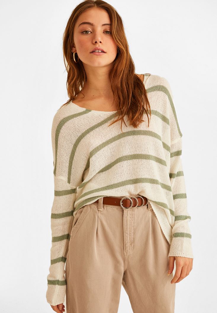 Çizgili V Yaka Kazak modeli, yumuşacık dokusu ve salaş görünümü ile yeni sezonda sizlerle buluşuyor. Kadın triko modeli, V yaka duruşu ve çizgili deseni ile dikkat çeken bir parça olarak Oxxo'da karşınıza çıkıyor. V yaka kazak modeli, okul veya iş ortamınız için elde edeceğiniz mükemmel kombinler için ideal bir seçenek oluyor. Yüksek belli pantolonlarla bir araya getirebileceğiniz kadın triko modelini dolabınızın favorilerine ekleyebilirsiniz. Hırkalarla ve eteklerle yakalayacağınız şıklığı da V yaka kazak modeliyle taçlandırabilirsiniz. Oxxo'nun hoş dokularla ve göz alıcı desenlerle sizlere sunduğu kadın triko modelleri ile kombinlerinize canlılık katabilirsiniz.