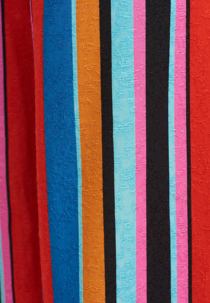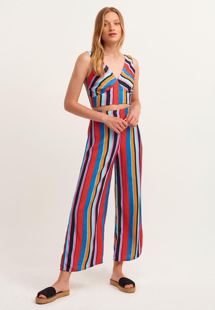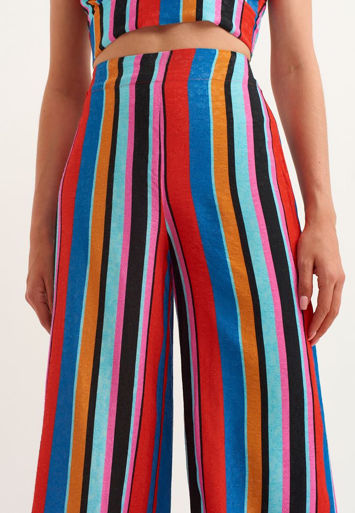 Çok Renkli Çizgili Wide-Leg Pantolon