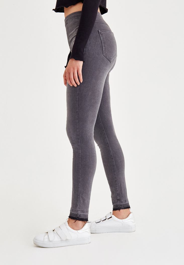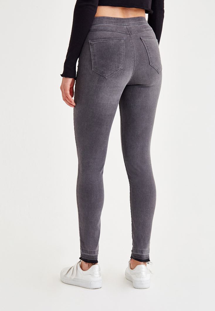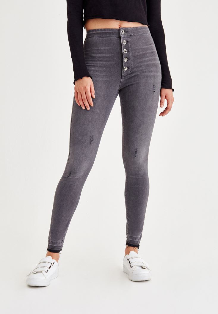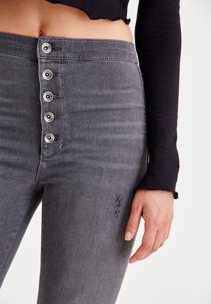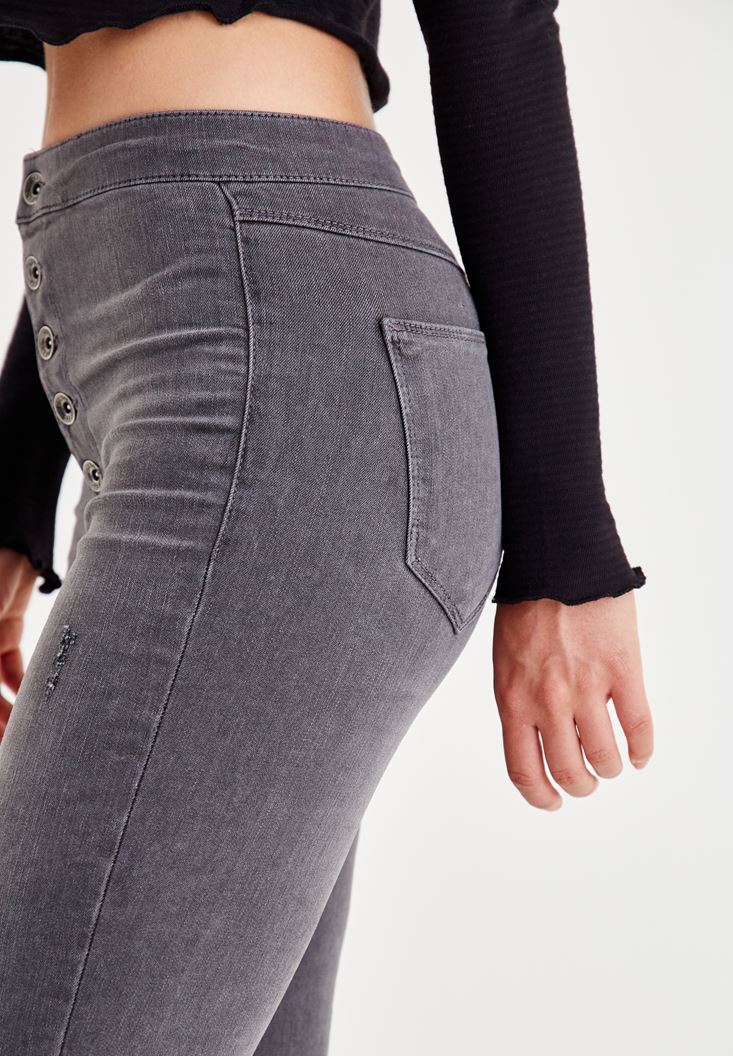 • Bayan Gri Çok Düğmeli Dar Paça Denim Pantolon