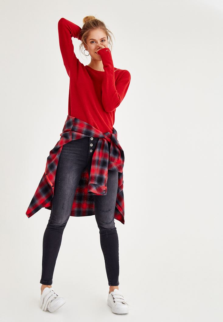 Çok Dügmeli Dar Paça Denim Pantolon Modeli sahip oldugu konforlu kesim sayesinde kullanim konforunuzu basarili bir sekilde ön plana çikaran pantolon modelleri arasinda yer aliyor. Yüksek bel kesimi ile hareket özgürlügü saglayan tasarimin bacaklari saran kesimi, bacak boyunun daha uzun gözükmesinde etkili oluyor. Çok dügmeli tasarimi ile kullanim rahatligi saglayan pantolon modelinin dokusunda bulunan viskon ve pamuk her zaman rahat hissetmenizi saglayacak. Pamuk dokunun yumusakligi ve viskon dokunun nefes alabilen yapisi sayesinde kullanmaktan keyif alacaginiz tasarim, OXXO'nun sadelikten gelen sikligi basarili bir sekilde yansitan jean modelleri arasinda yer aliyor. Farkli tarzlardaki kombinlerinizi tamamlayabileceginiz pantolon modeli kisa sürede dolabinizdaki vazgeçilmez parçalardan birisi olacak.