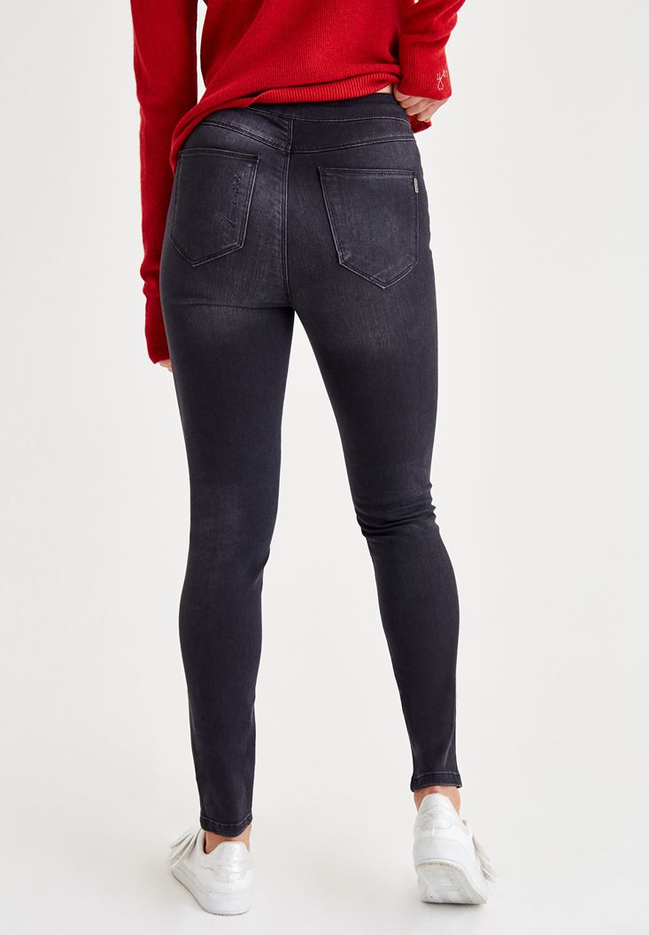 • Bayan Siyah Çok Düğmeli Dar Paça Denim Pantolon