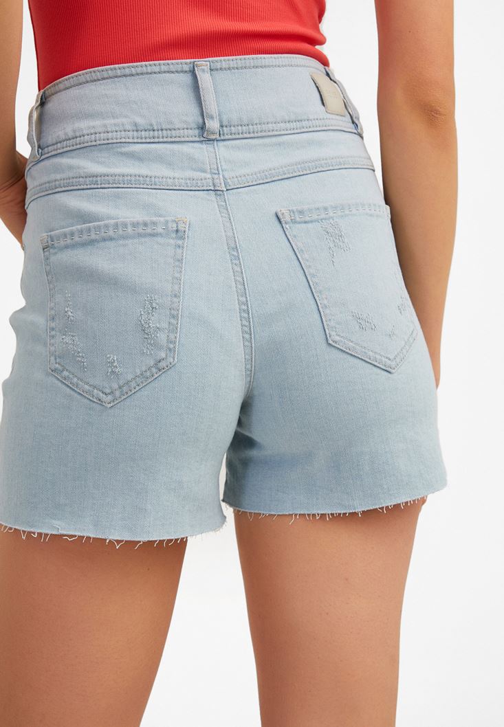 • Bayan Mavi Çok Düğmeli Yüksek Bel Kot Şort