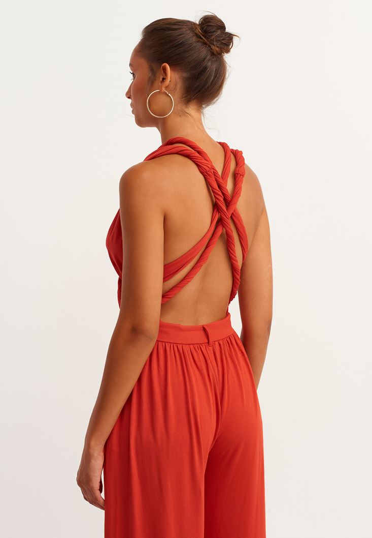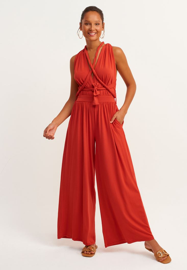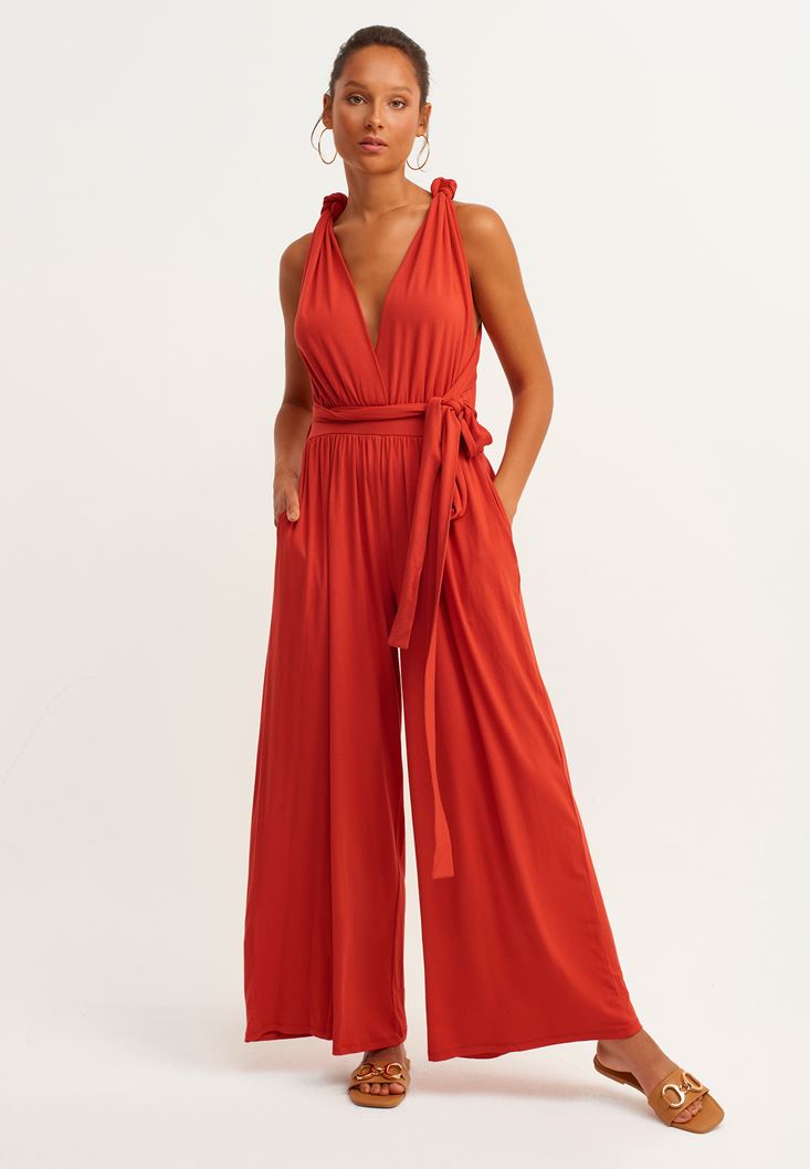 • Bayan Kırmızı Çok Yönlü Wide-Leg Tulum