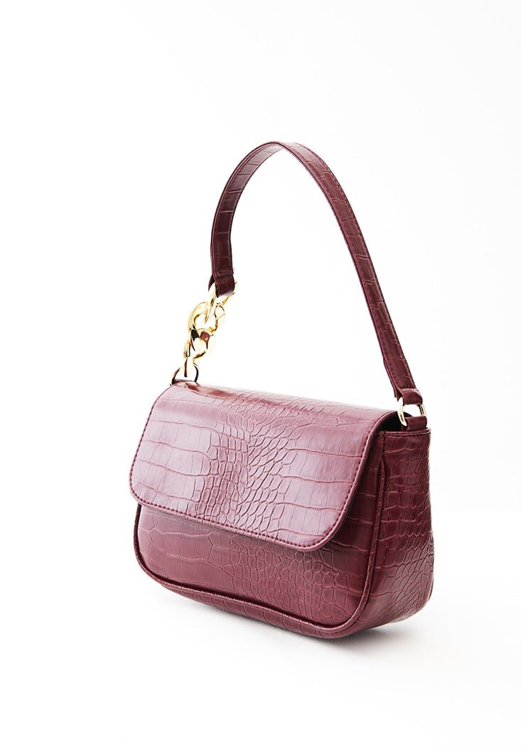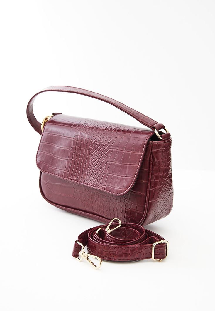 • Bayan Bordo Crocodile Dokulu Askılı Çanta