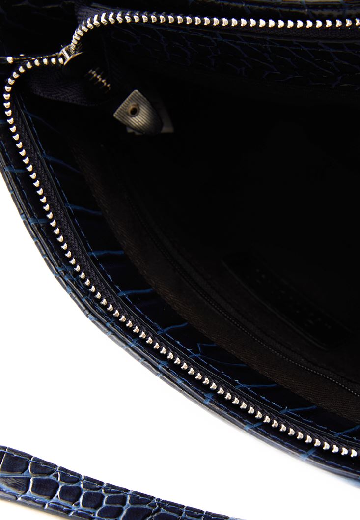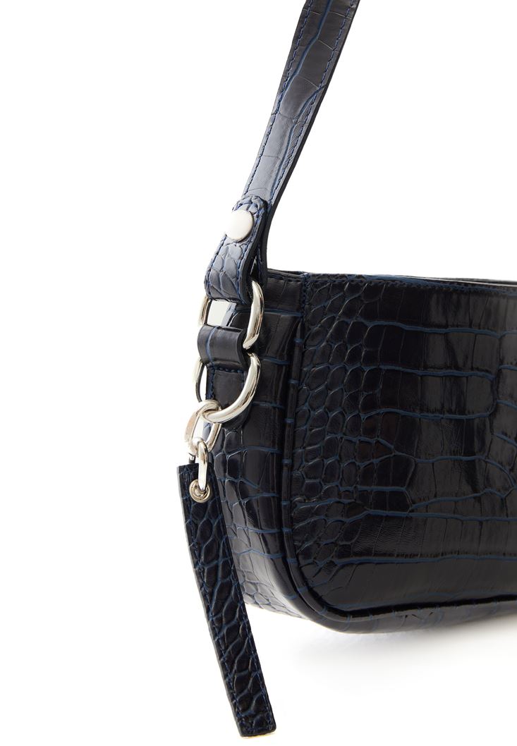 Lacivert Crocodile Dokulu Askılı Çanta