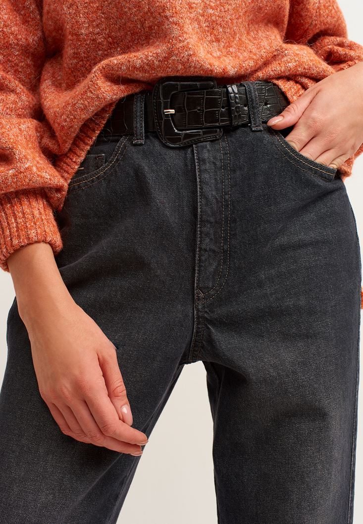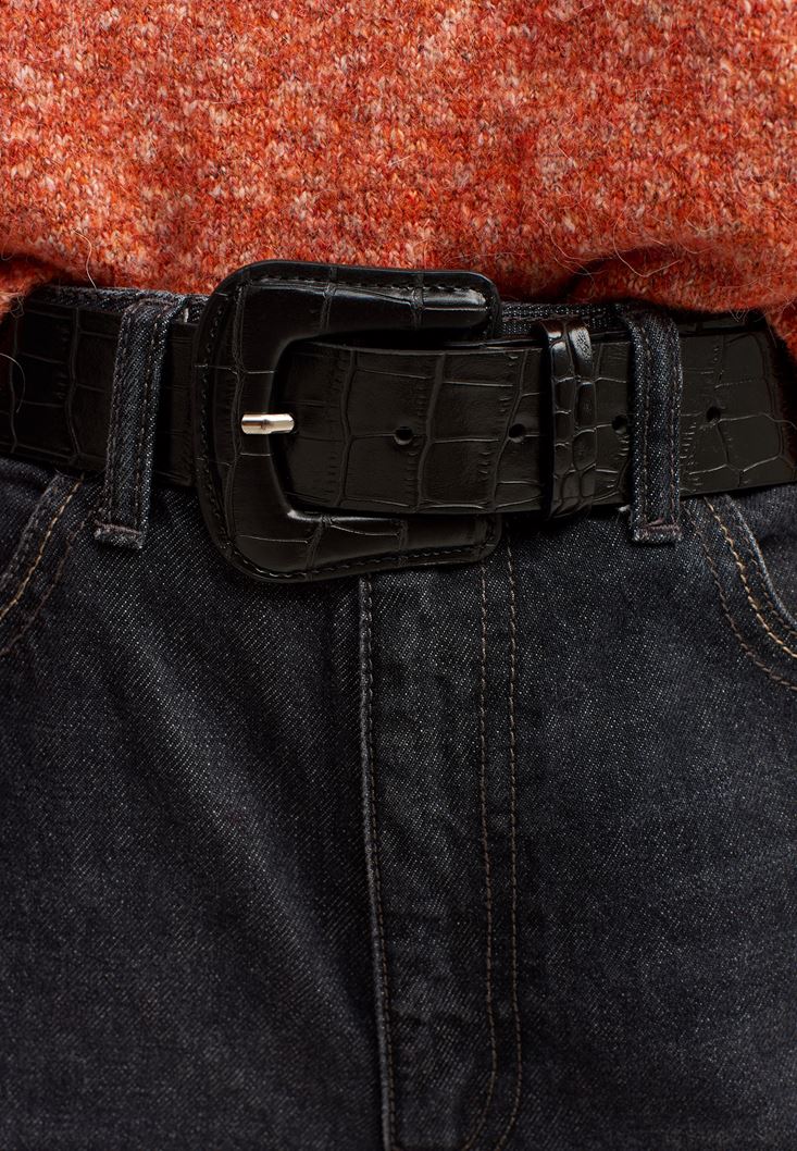 • Bayan Siyah Crocodile Dokulu Casual Kemer