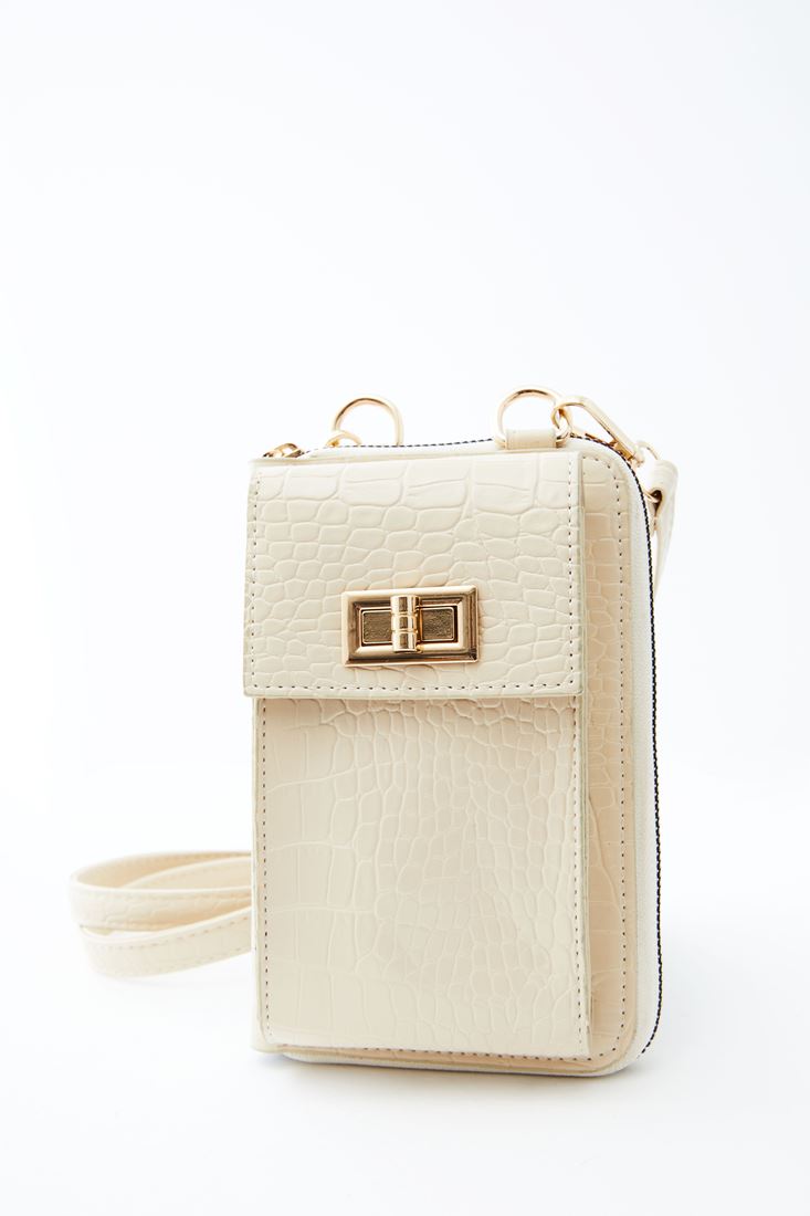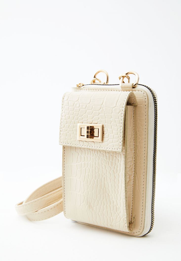 Bej Crocodile Dokulu Telefon Çantası