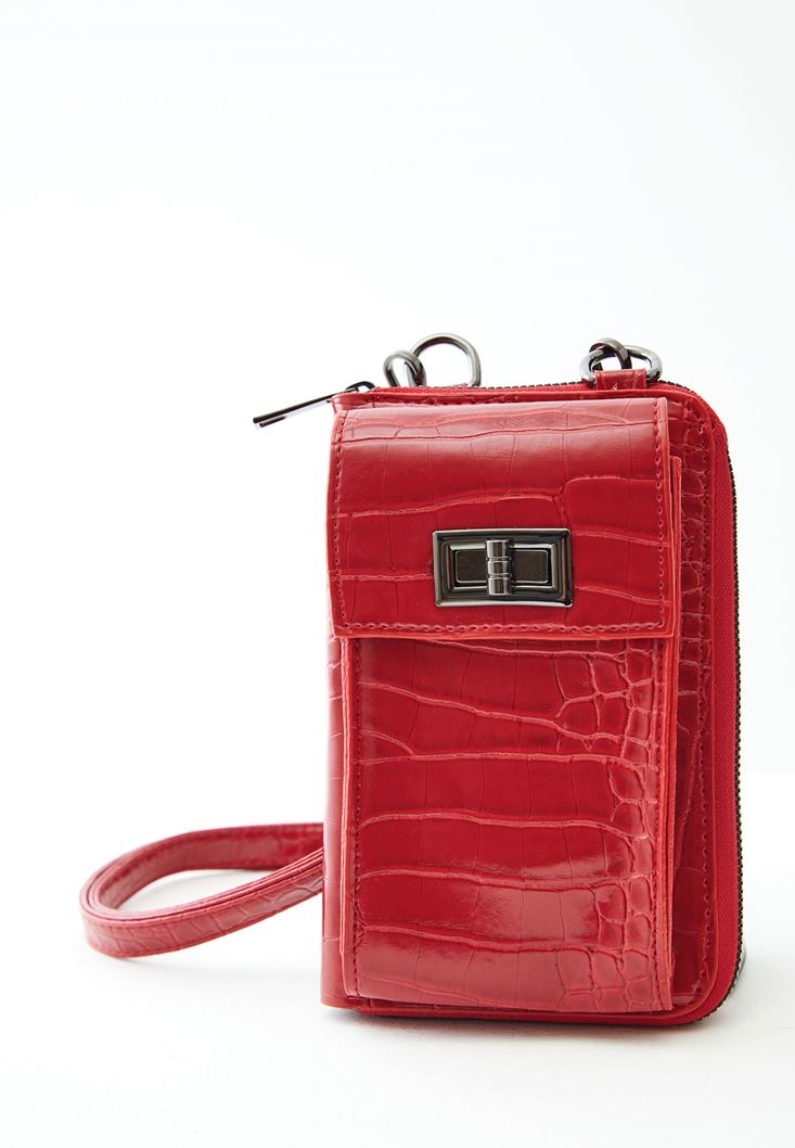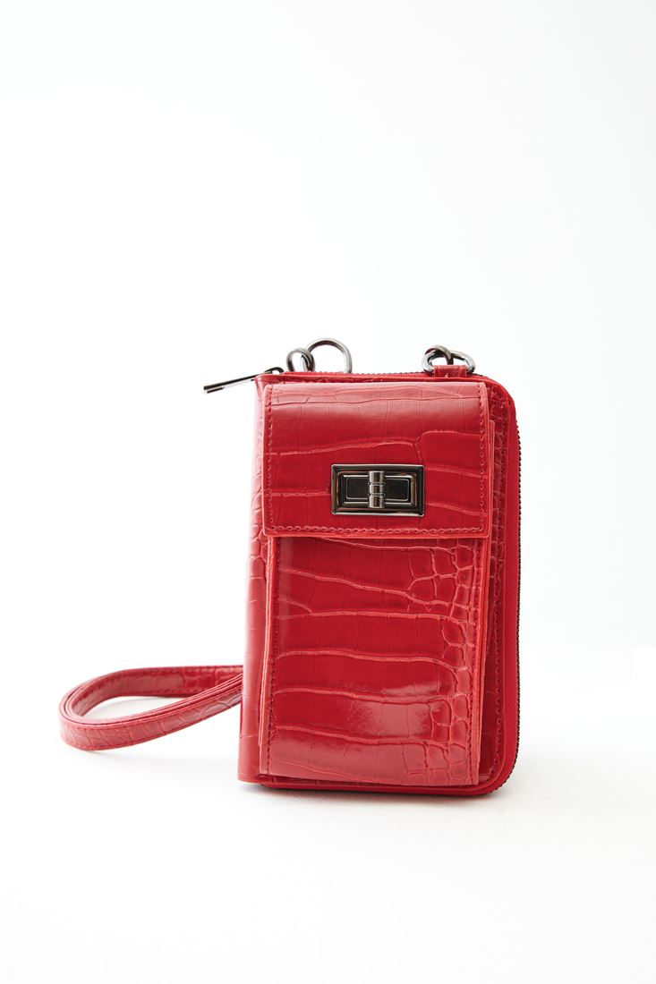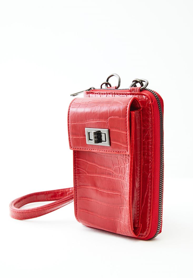 Kırmızı Crocodile Dokulu Telefon Çantası