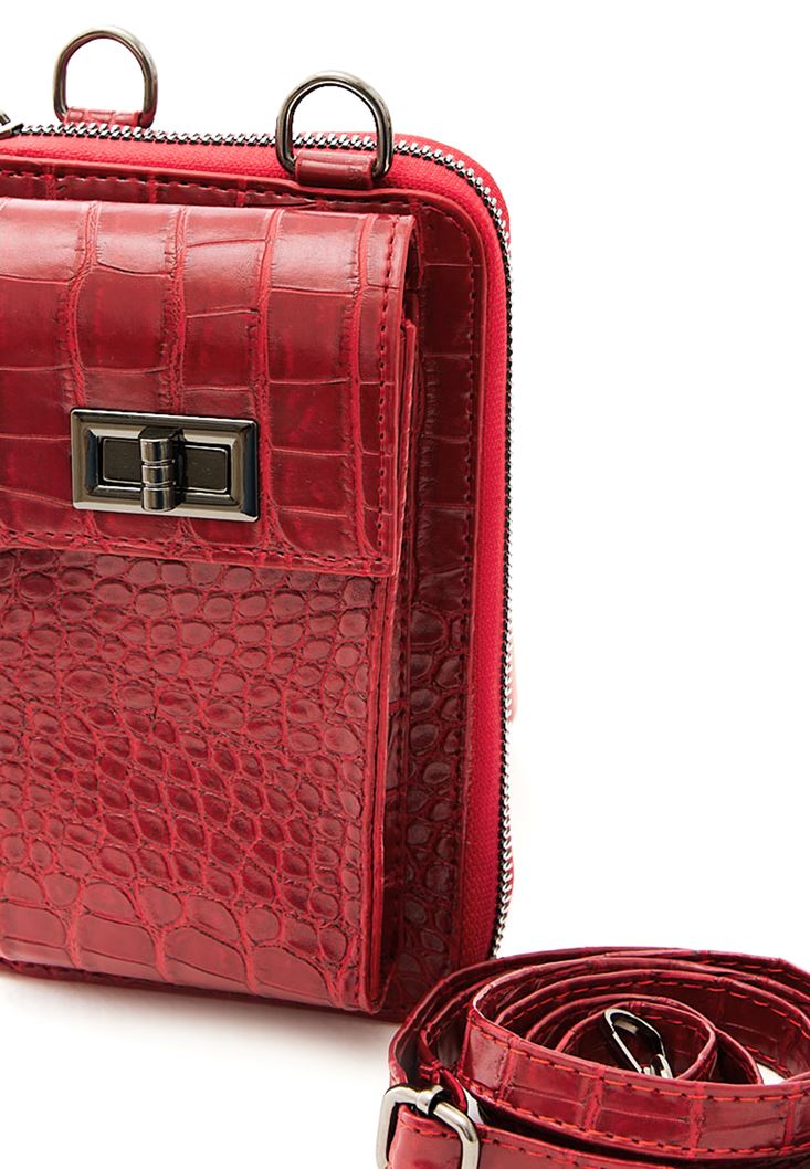 Kırmızı Crocodile Dokulu Telefon Çantası