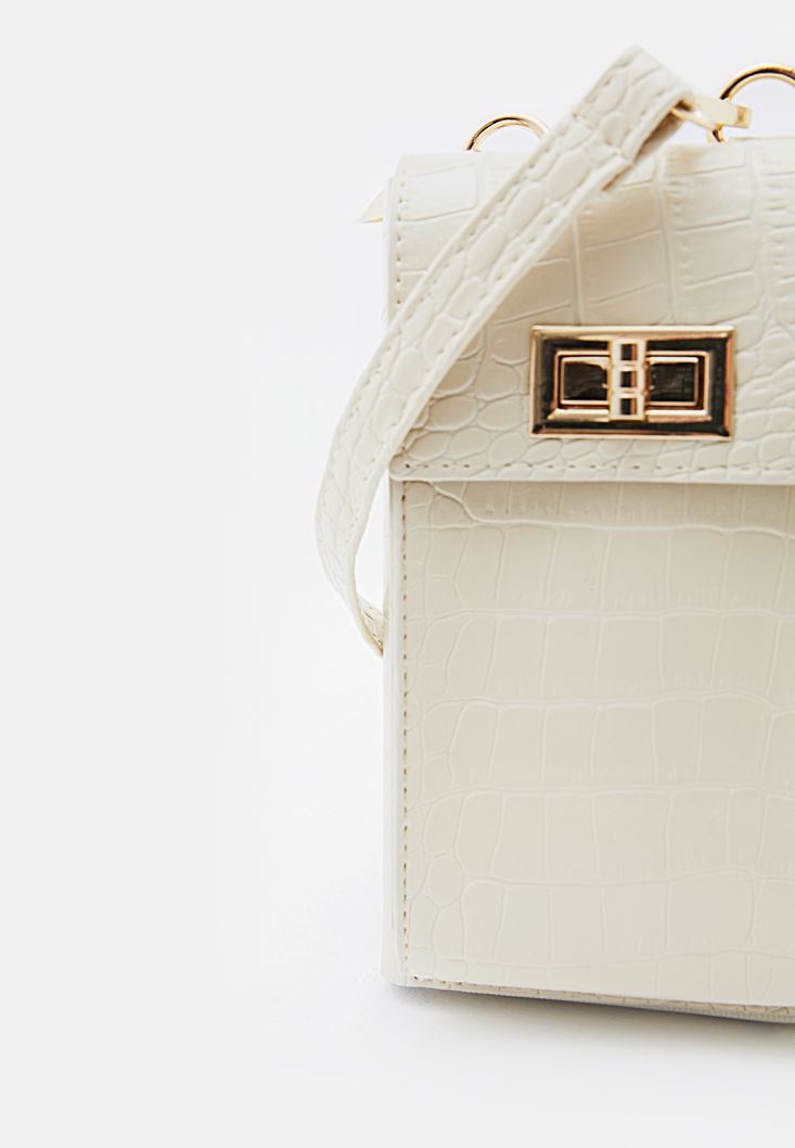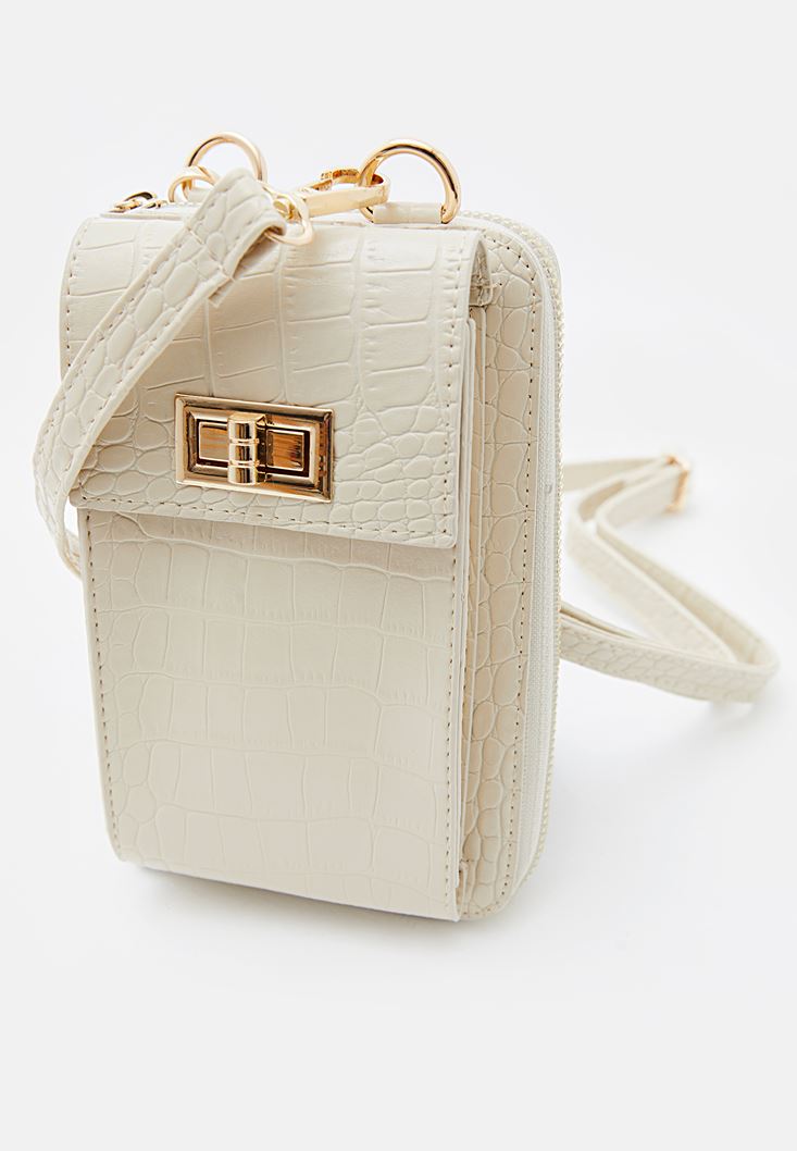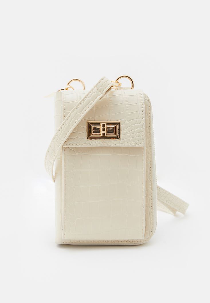 Bej Crocodile Dokulu Telefon Çantası
