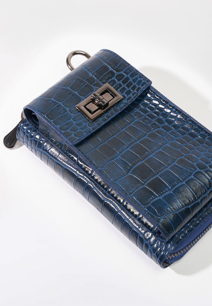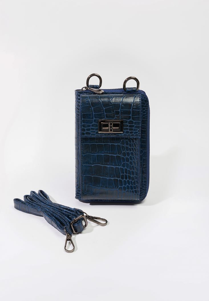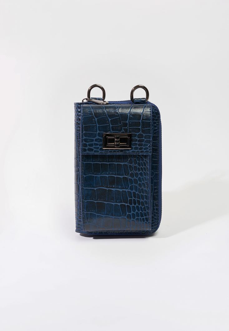 Lacivert Crocodile Dokulu Telefon Çantası