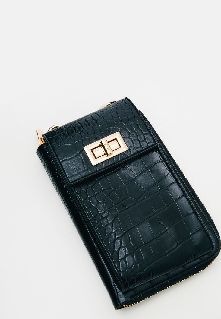 • Bayan Siyah Crocodile Dokulu Telefon Çantası