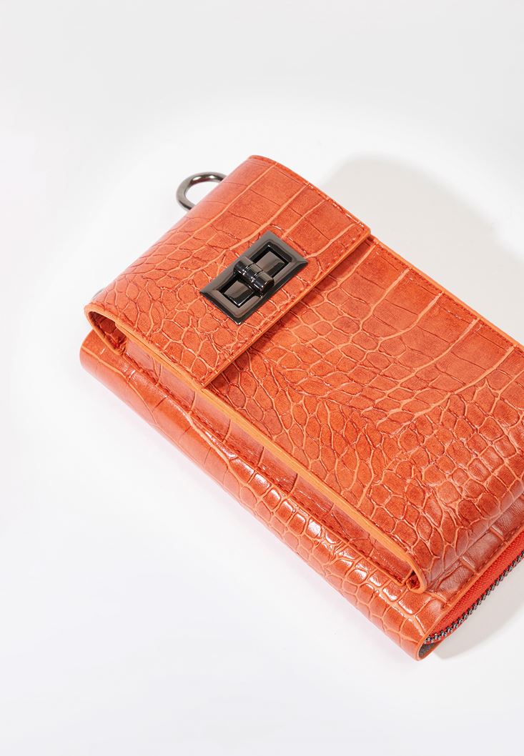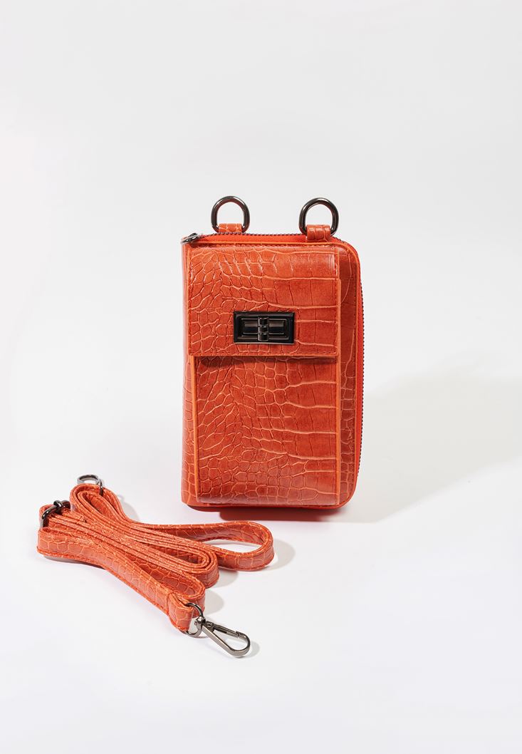 Turuncu Crocodile Dokulu Telefon Çantası