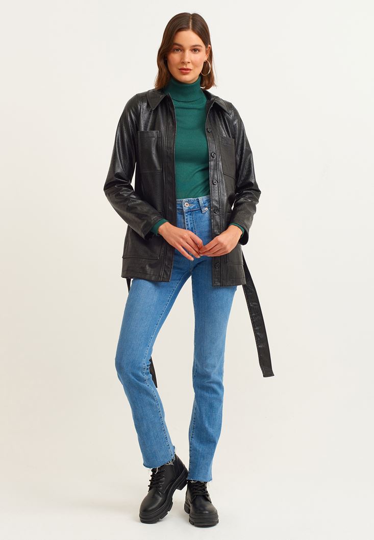 • Bayan Siyah Crocodile Dokulu Vegan Deri Ceket
