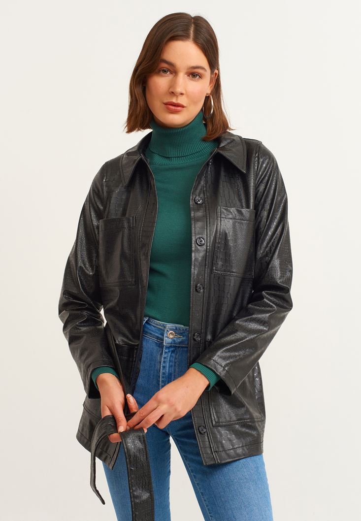 Oxxo Crocodile Dokulu Vegan Deri Ceket 213354147