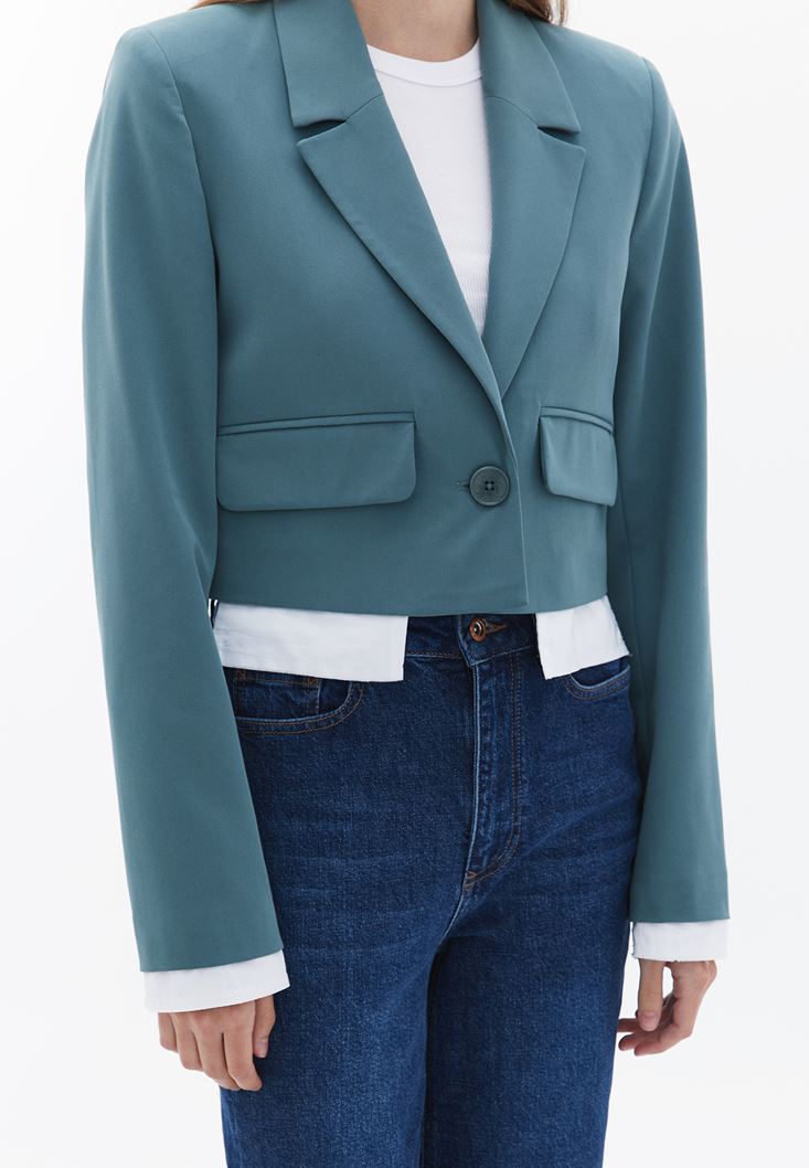 Yeşil Crop Blazer Ceket