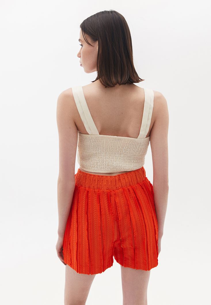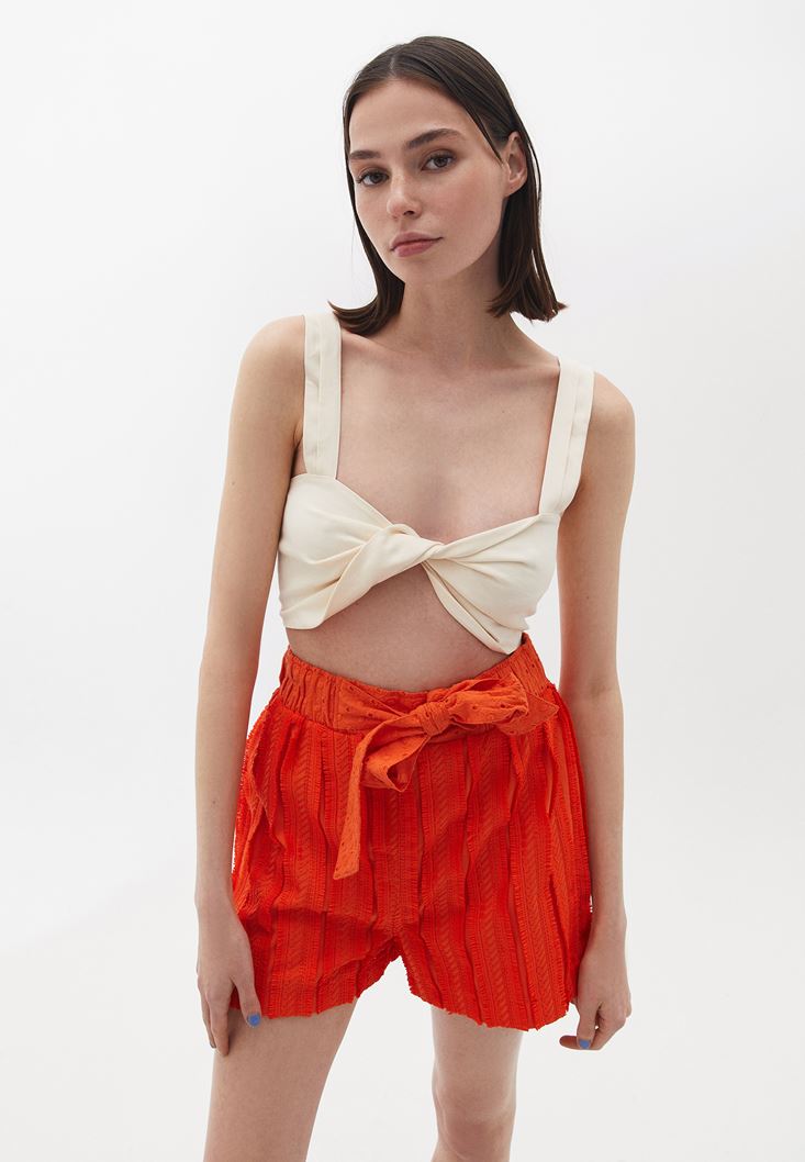 Crop Bluz ve Brodeli Şort Kombini