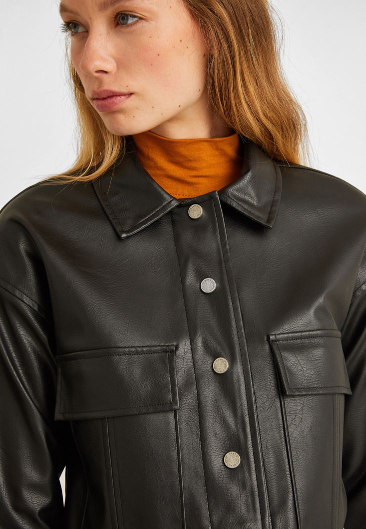 Crop Deri Ceket modeli, yumuşak dokusu ve deri asilliğinin beraberinde gelen sıra dışı tasarımıyla sizlere sunuluyor. Crop ceket modeli diğer ceketlerde gördüğünüz fermuar akımının dışına çıkarak, farklı bir hava katan çıt çıt detayıyla taçlanıyor. Crop kesim olan kadın ceket modeli, küçük yaka detayıyla yüksek bel pantolon veya etek modelleri ile kombin yapabilmenize imkan tanıyor. Tarzınızda çarpıcı ayrıntılar yaratmak istediğinizde ise deri pantolon modelleri ile takım şıklığını çok rahat bir şekilde yakalayabilirsiniz. Topuklu ayakkabı veya topuklu bot modelleri ile kombin yapabileceğiniz deri ceket modeli ile kadınsı zarafetinizi bir adım öne taşıyabilirsiniz. Oxxo’nun yankı uyandıran ceket modelleri ile zevkinize uygun kombinler yaparken stilinizi ön plana çıkarabilirsiniz.