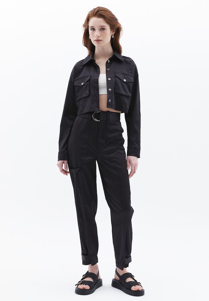 Crop Gömlek ve Havuç Paça Pantolon Kombini