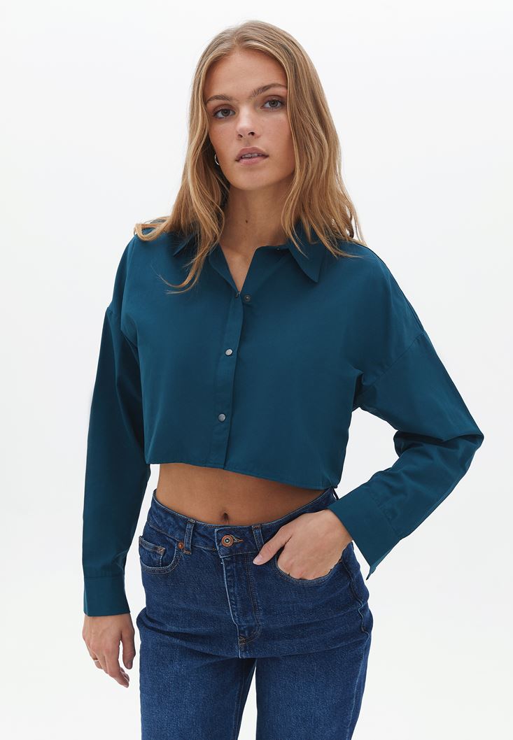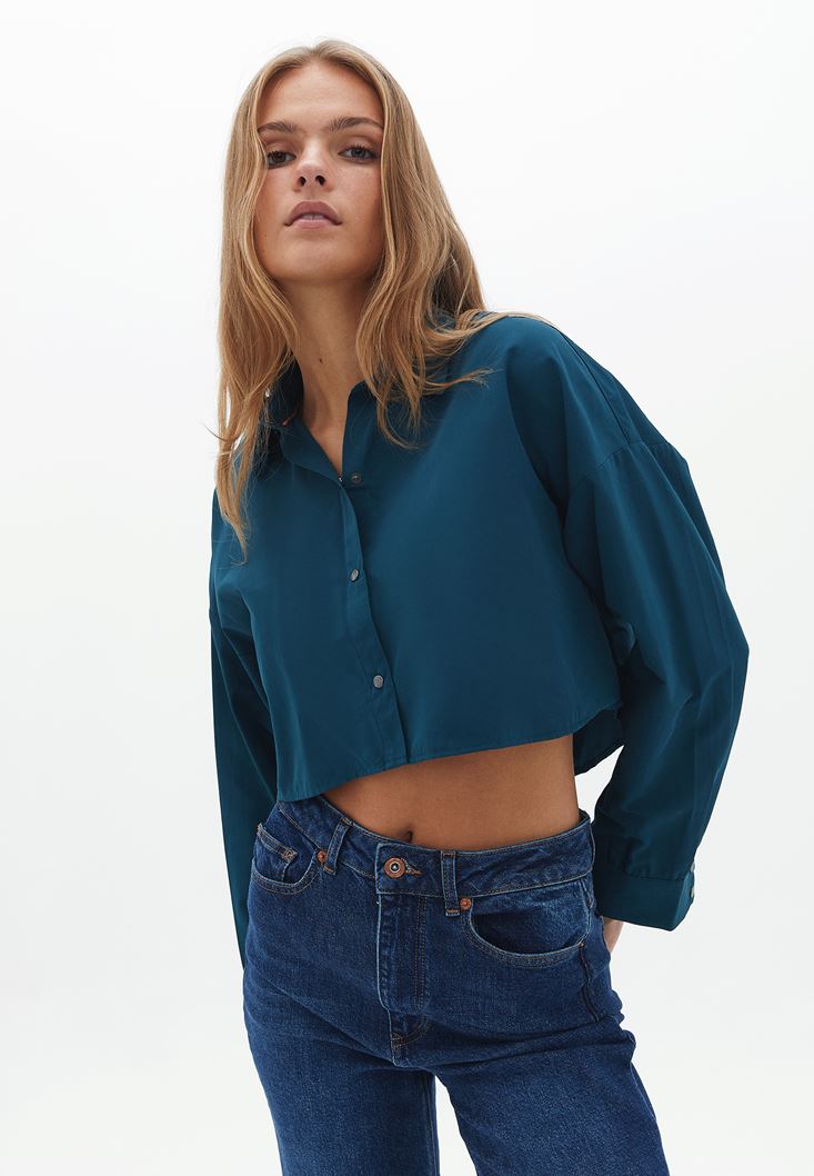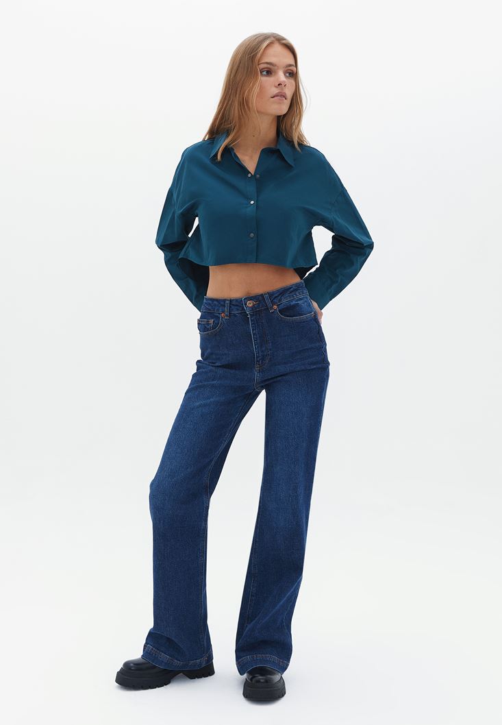 Crop Gömlek ve Yüksek Bel Pantolon Kombini