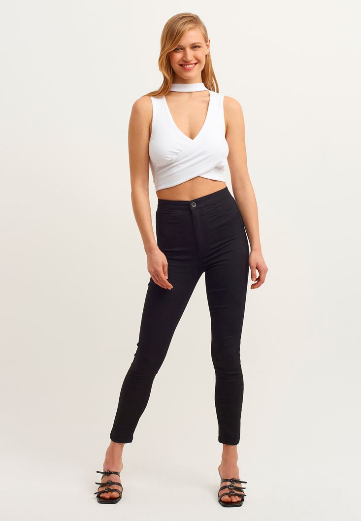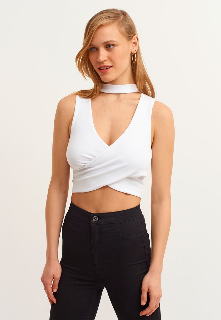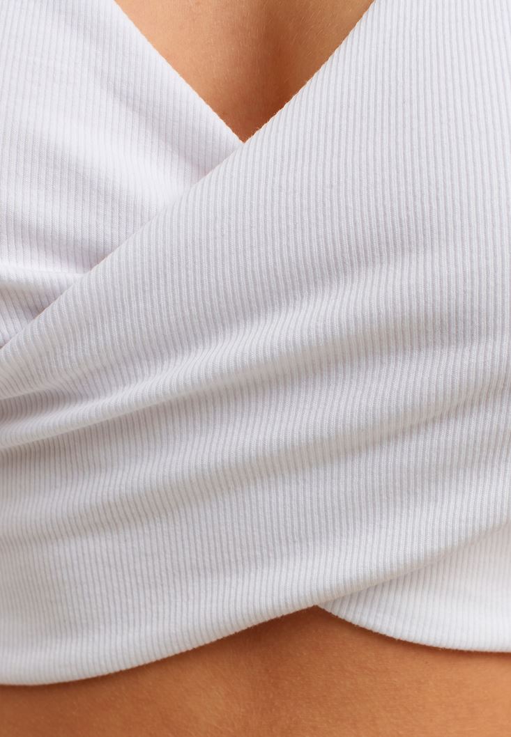 Beyaz Crop Kruvaze Atlet