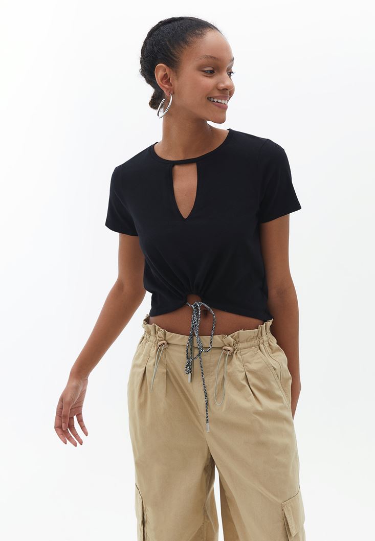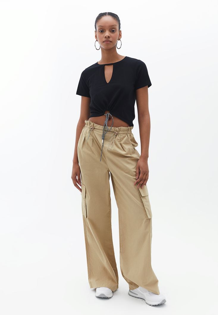 Yüksek Bel Wide-Leg Kargo Pantolon