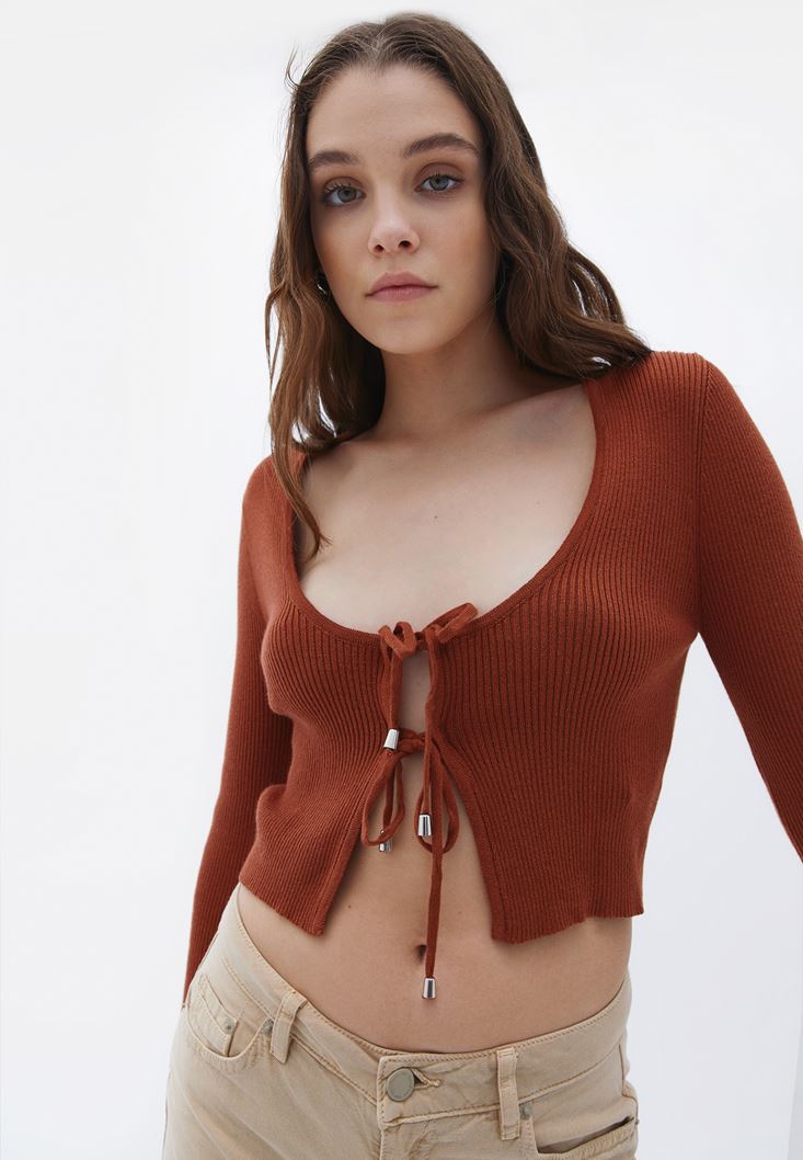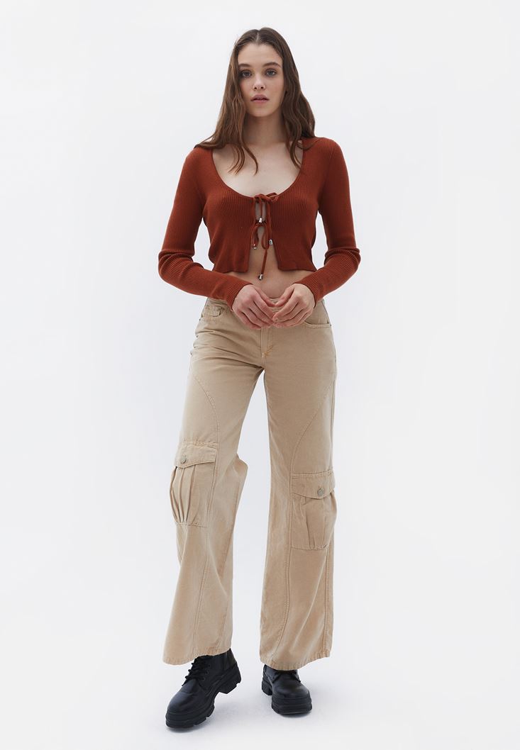 Crop Triko Hırka ve Jogger Pantolon Kombini