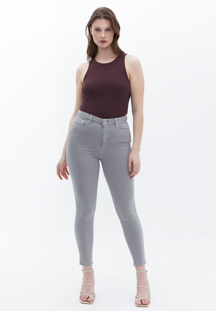 Gri Curvy Skinny Pantolon ( TENCEL™ )