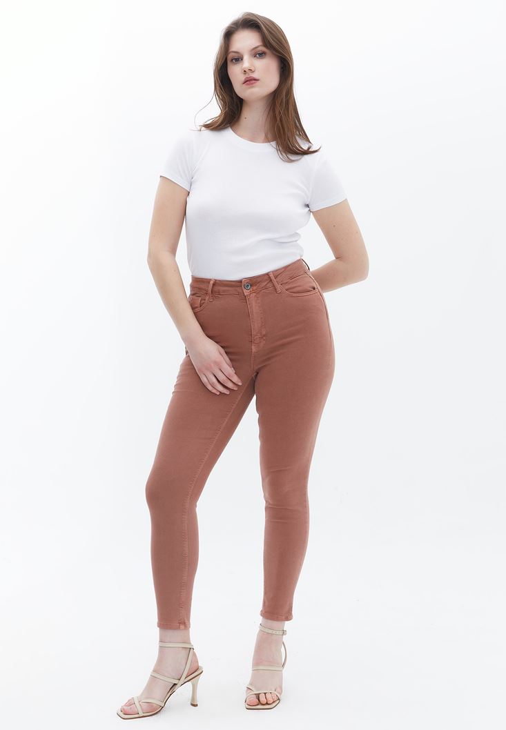 Kahverengi Curvy Skinny Pantolon ( TENCEL™ )